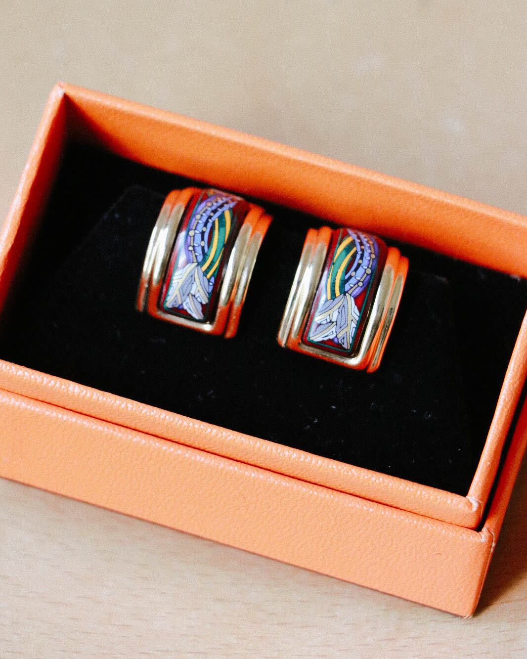 エルメスの伝統的なデザインの一つ、七宝焼エマイユシリーズのイヤリング。