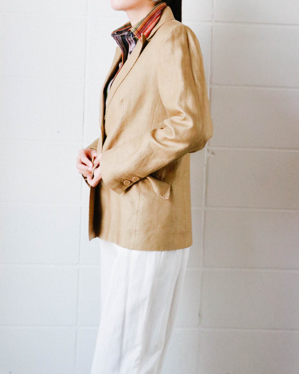 裏地付きでテーラードっぽさもありフォーマルにもデイリーにも、はたまた旅先でも着れるリネンのジャケットは一着もっているととても重宝します。