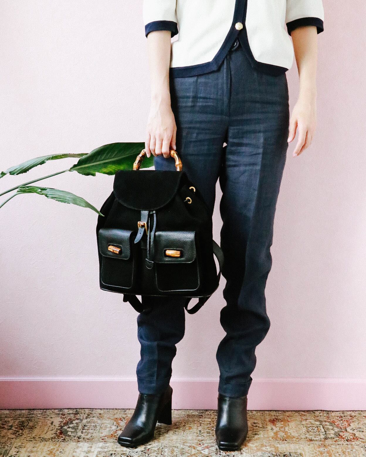 人気が再熱しているグッチのアイコン的な存在バンブーシリーズのリュック。しっかりと収納力がありと華奢なショルダーベルトが体にフィットするデザインはコーディネートも気にせず一年中大活躍できます。