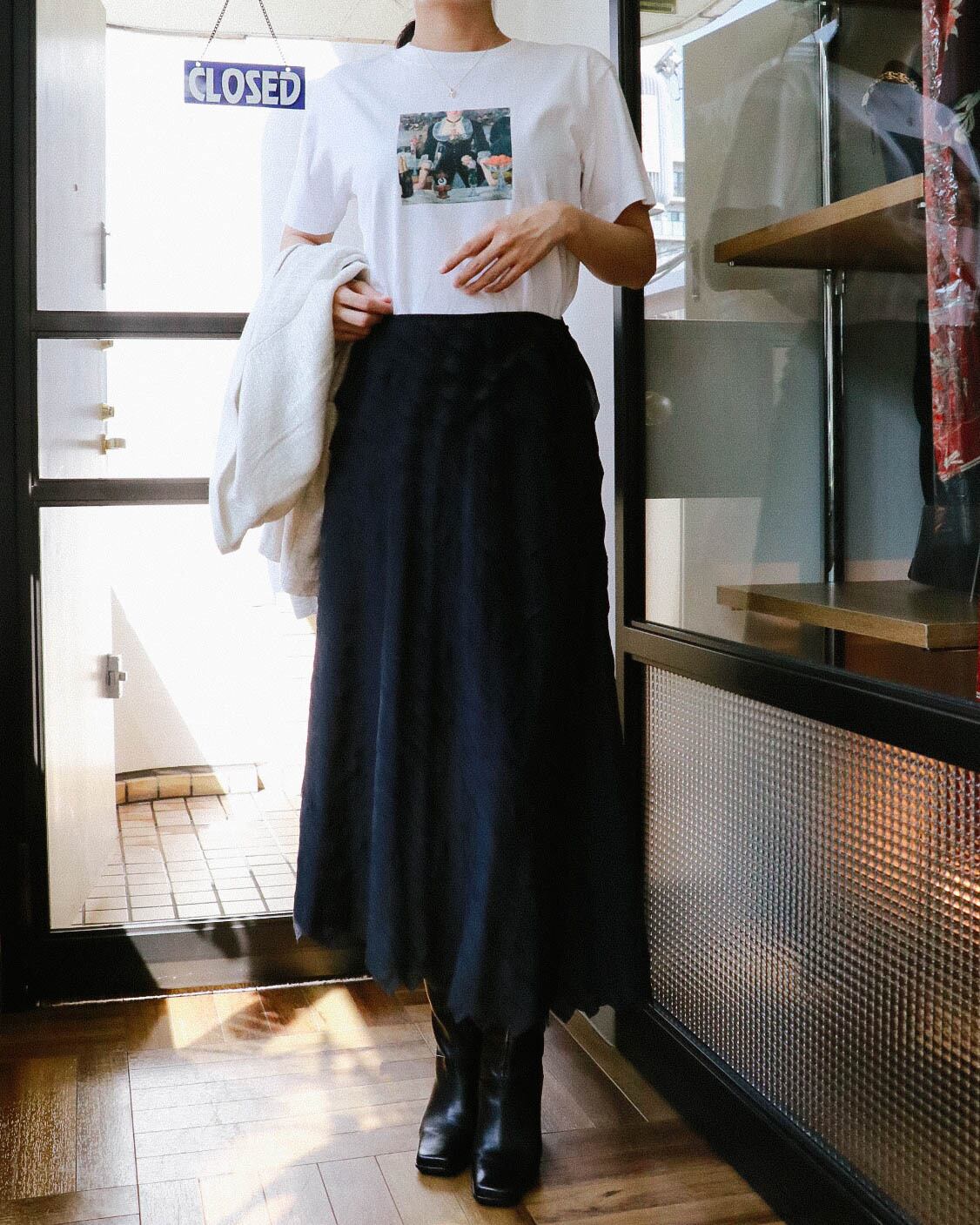 シーンを選ばず使えるブラックスカートはワードローブに備えておきたいアイテム。