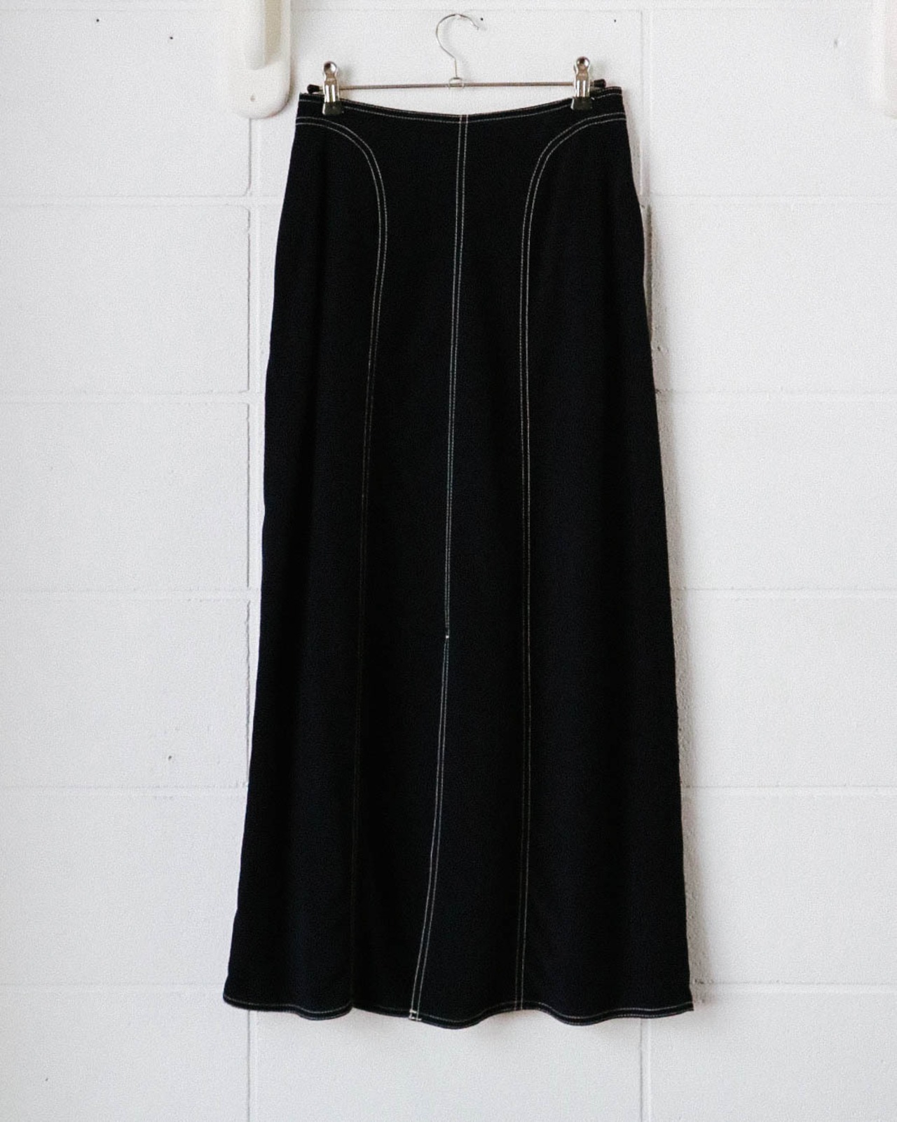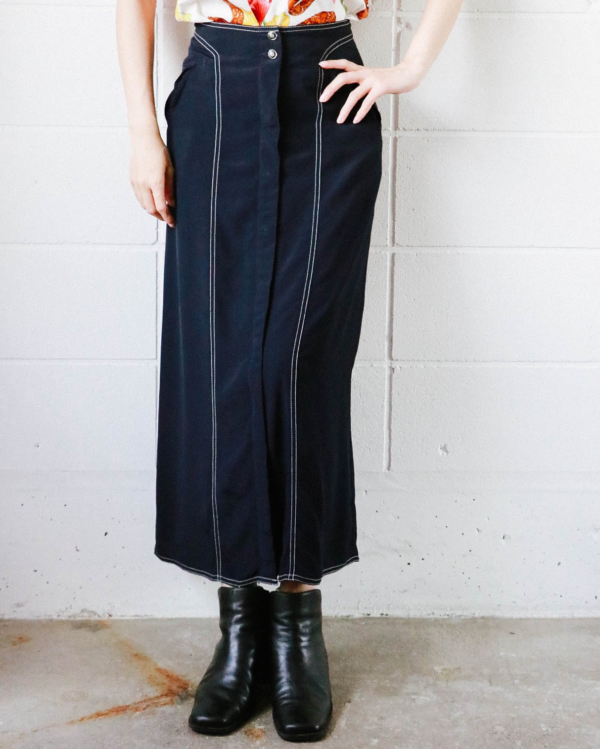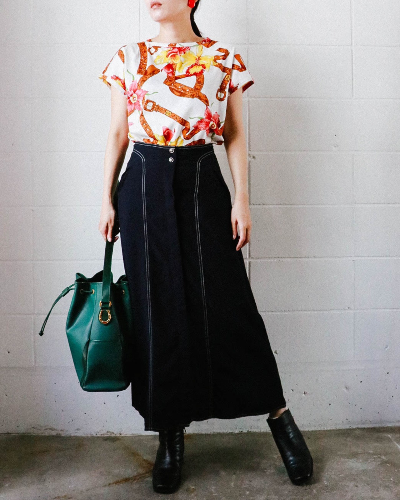 シルクのように肌触りの良いロングスカートはFENDIのもの。