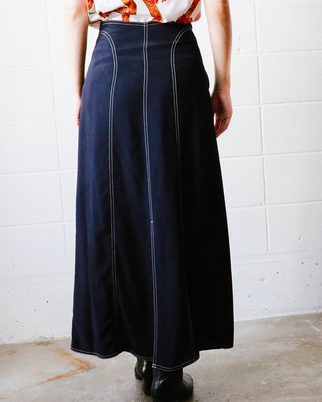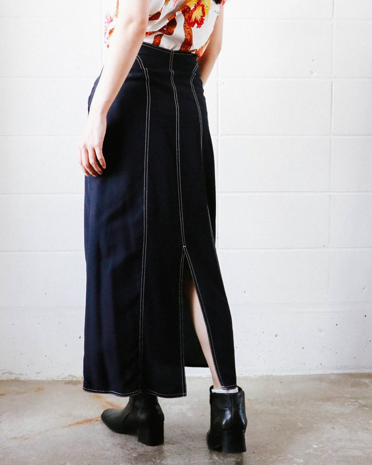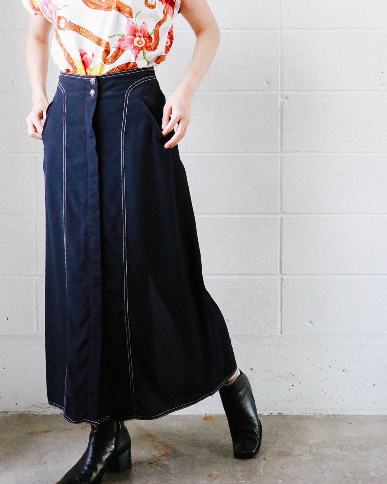 シルクのように肌触りの良いロングスカートはFENDIのもの。
