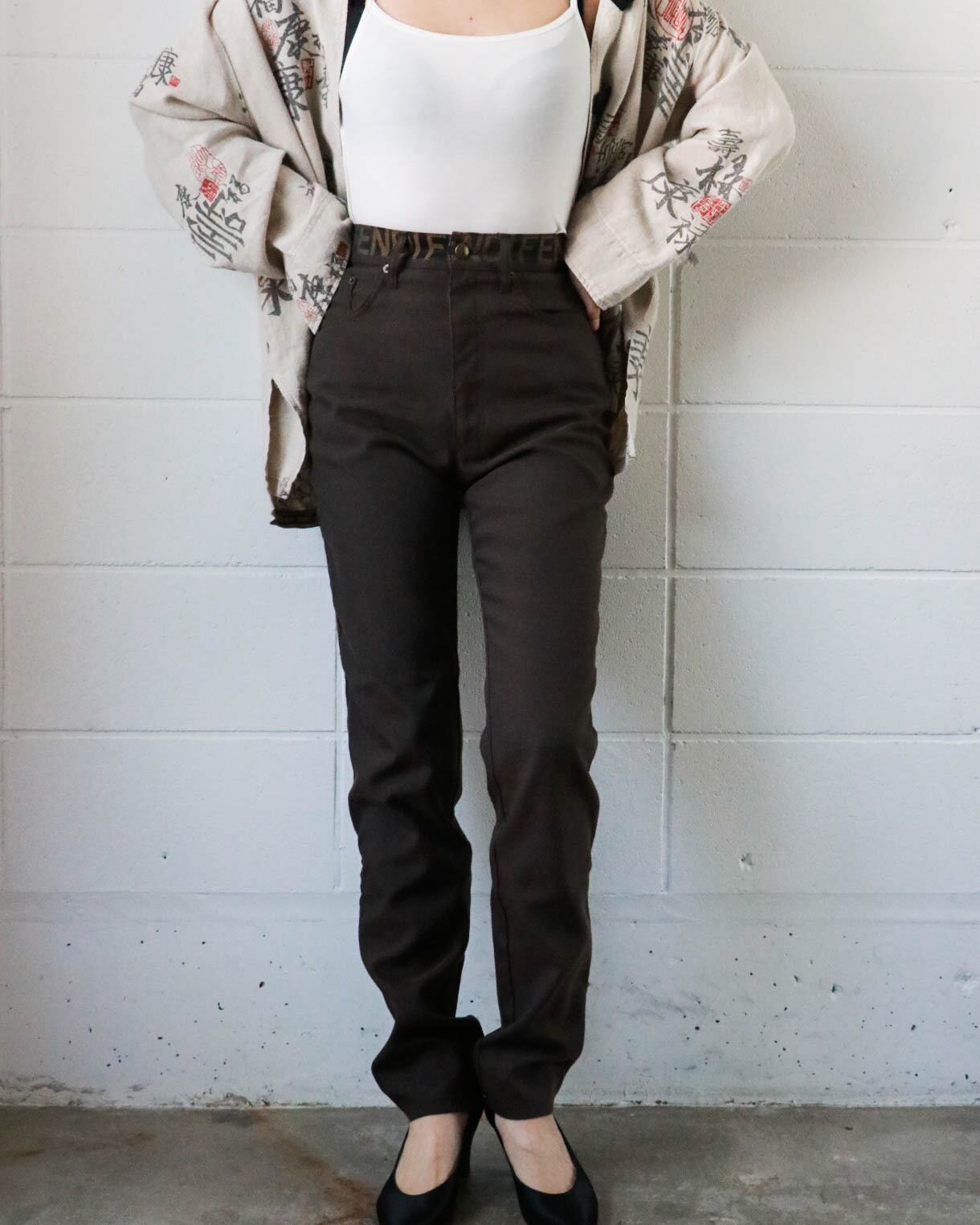 FENDIのデッドストックパンツが入荷しました。シンプルながらウエスト部分がこだわりのあるデザインで、合わせやすいブラウンカラーのスリムパンツ。スニーカーでカジュアルダウンはもちろん、ブーツスタイルもおすすめです。
