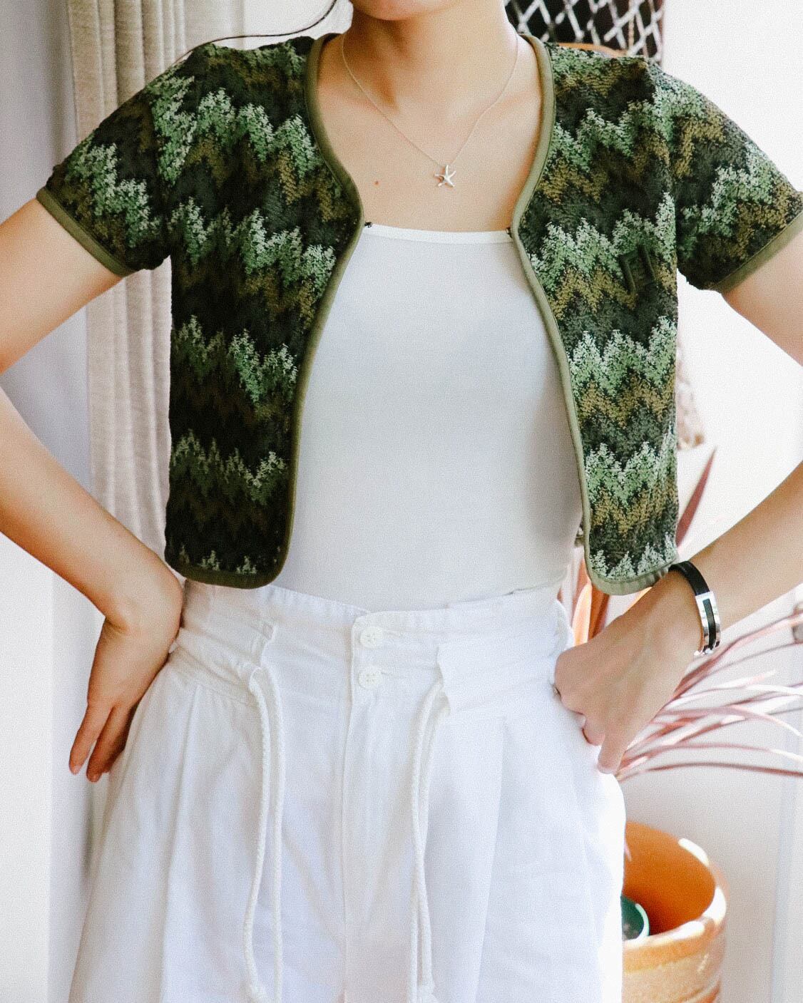 落ち着いたモスグリーンカラーのグラデーションが可愛いフェンディのボレロカーディガン。