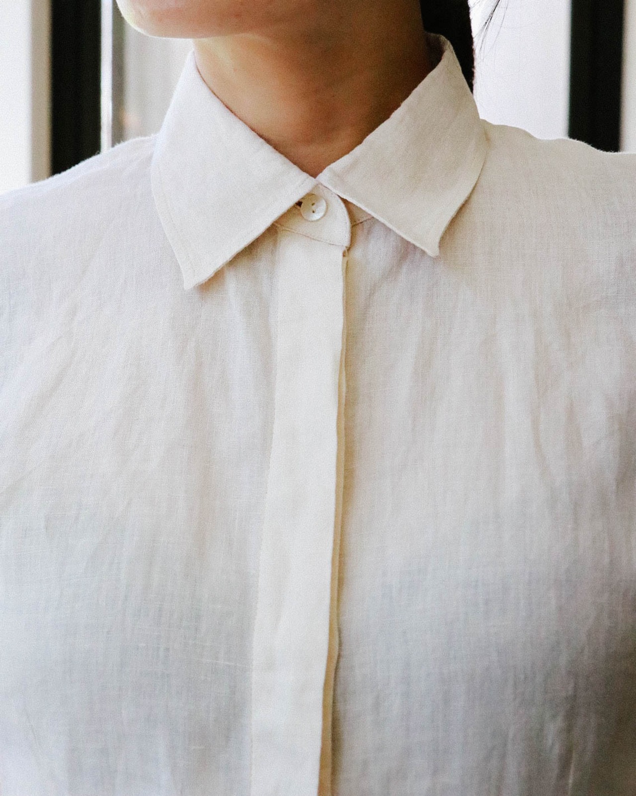 上質なリネン素材で着心地がよく、涼しげで柔らかな印象の生成色。