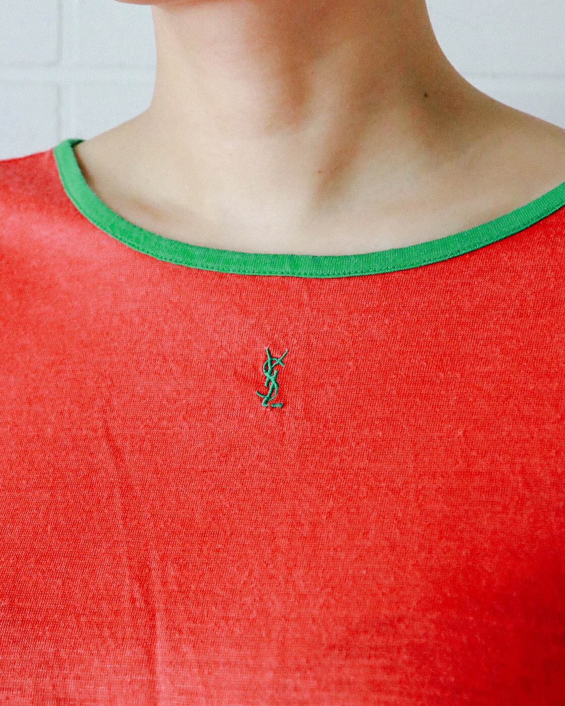 鮮やかなカラーのYSLのTシャツが入荷。ゆったりとしたボディーに小さめなセンターロゴがさりげなく可愛い。これからのシーズンにマストなTシャツは活躍するはず。