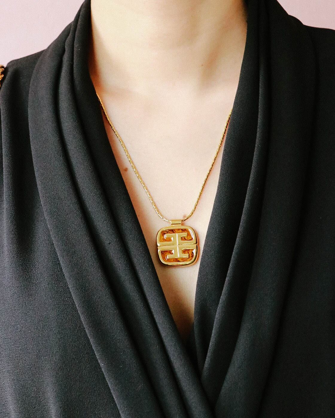 角を落としたフェミニンなデザインが朗らかな印象。ジバンシィのネックレスです。