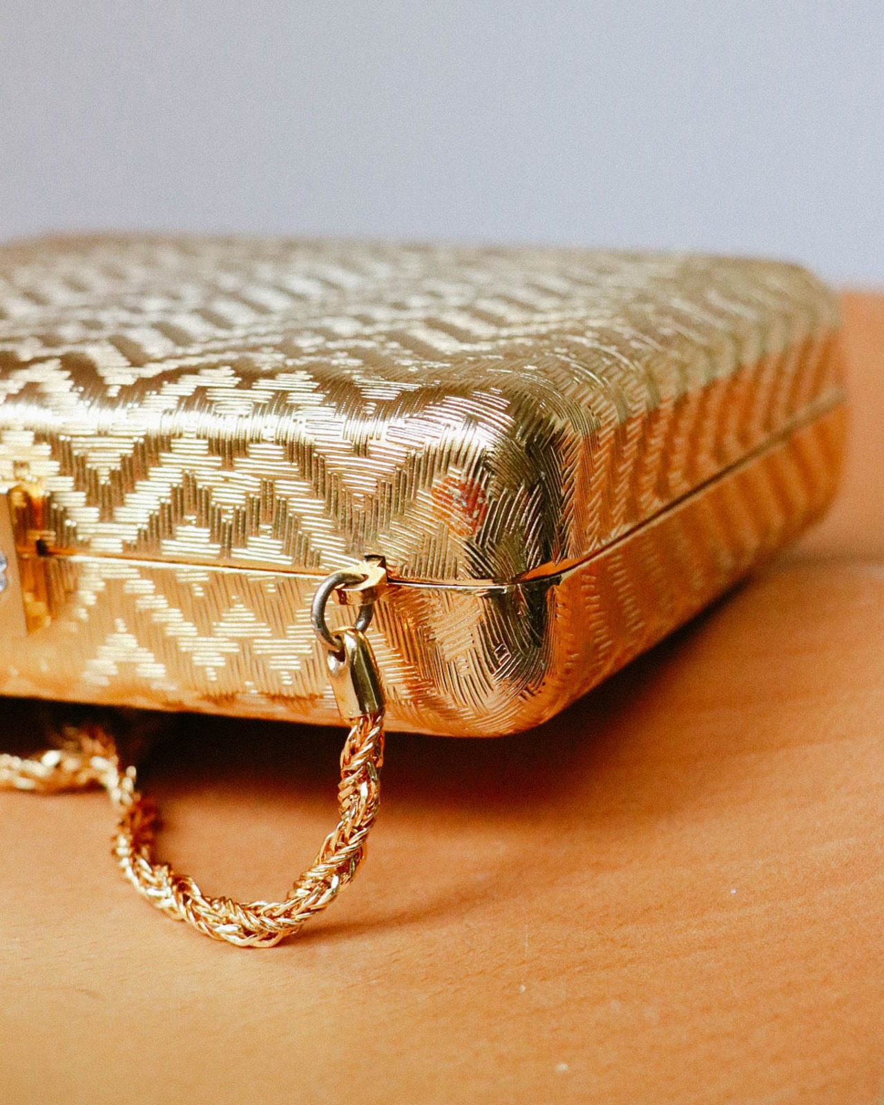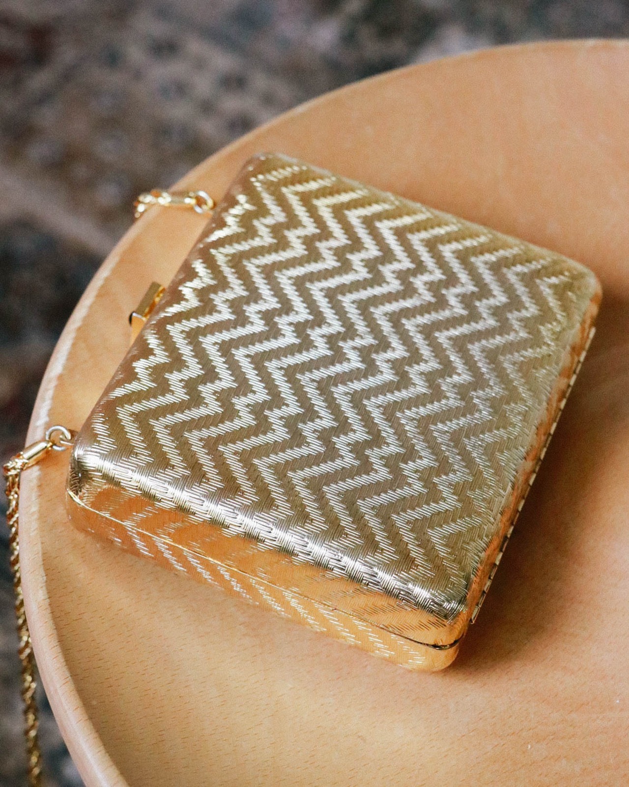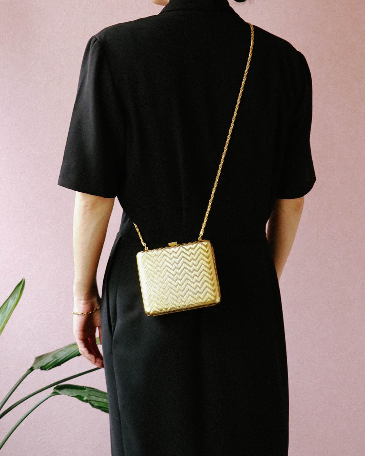 ゴールドカラーがキラキラと光り輝き、持つだけでコーディネートがパッと華やかになります。
