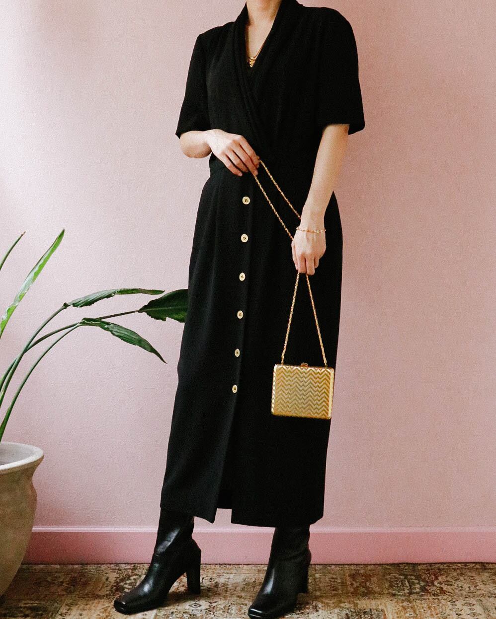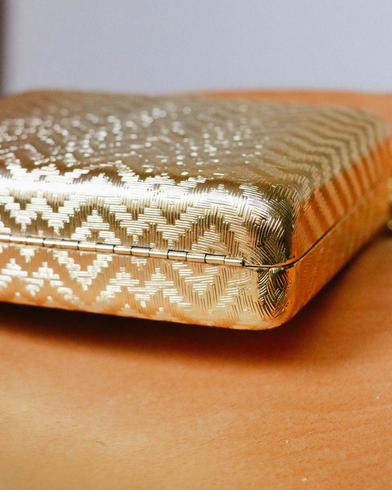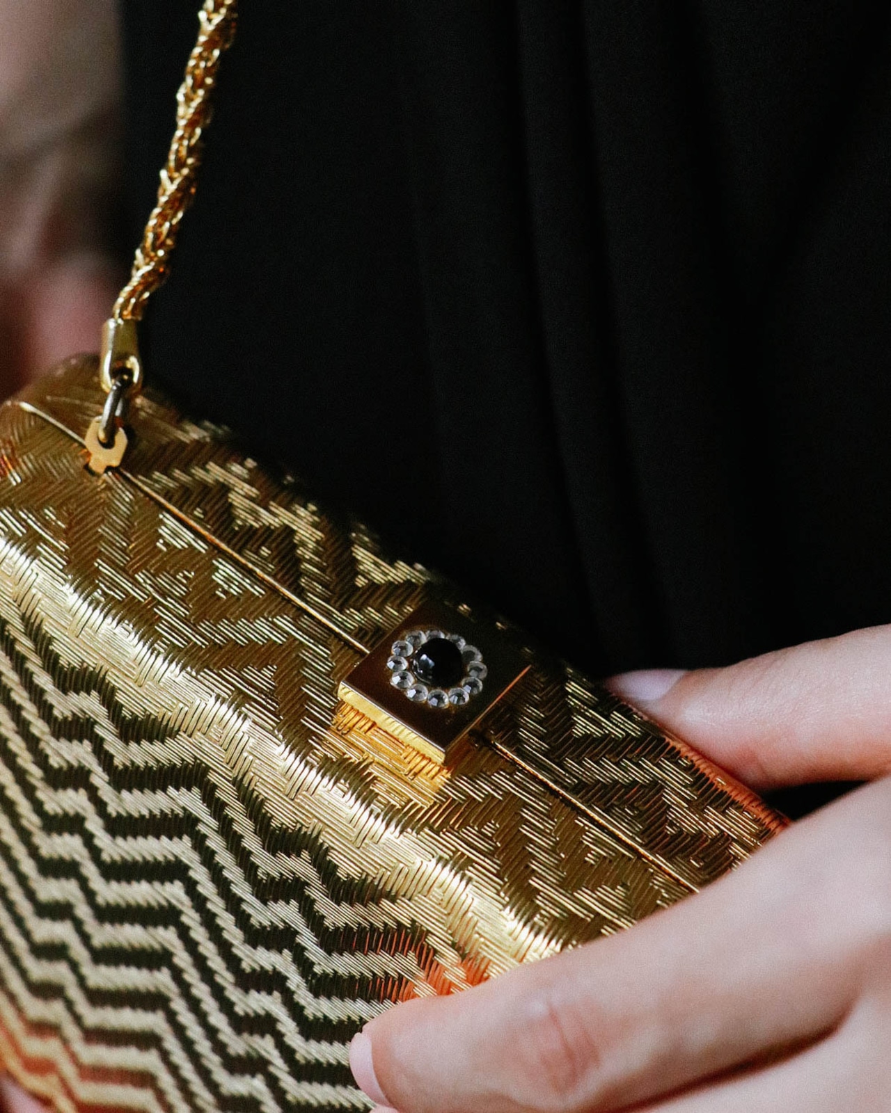 ゴールドカラーがキラキラと光り輝き、持つだけでコーディネートがパッと華やかになります。