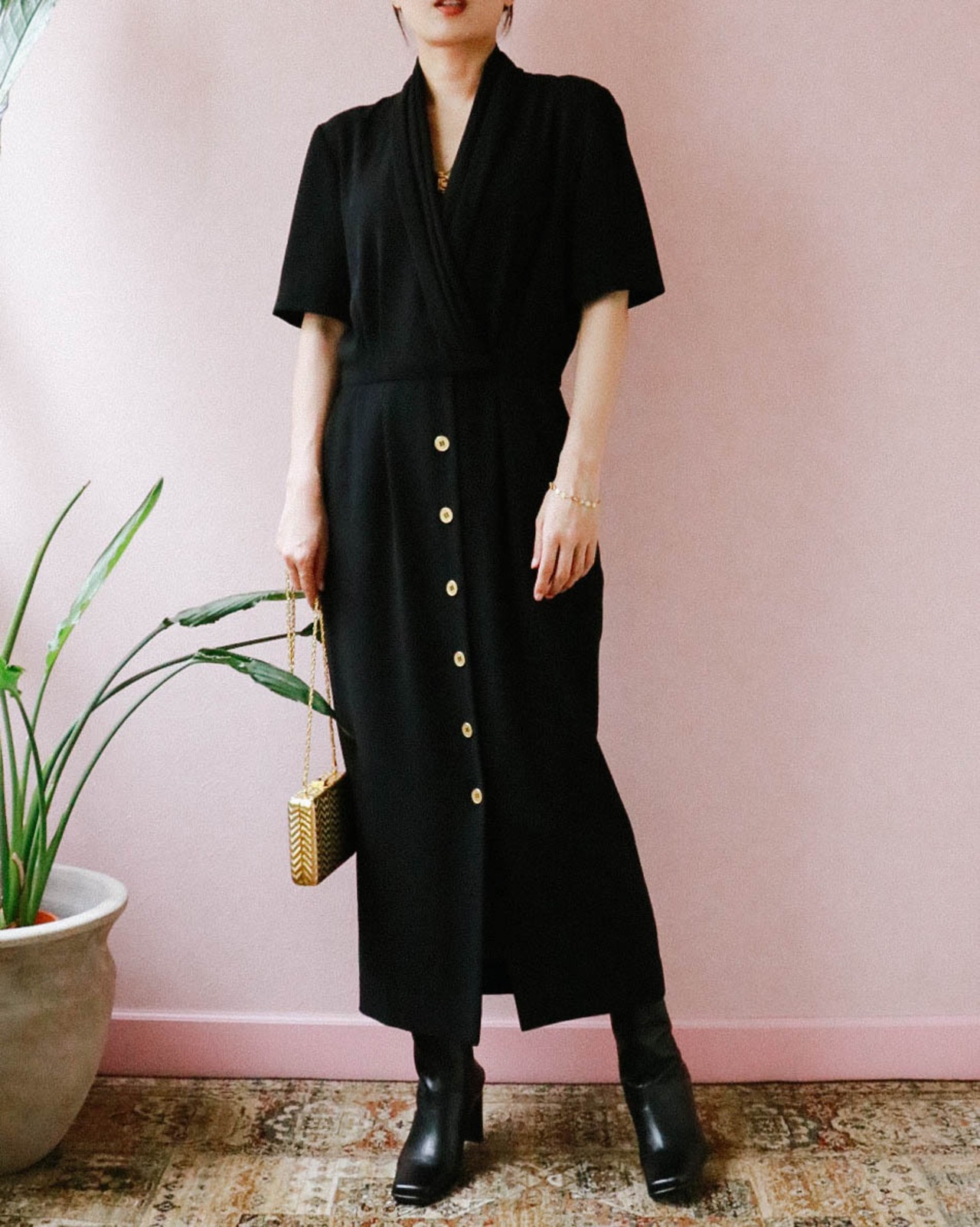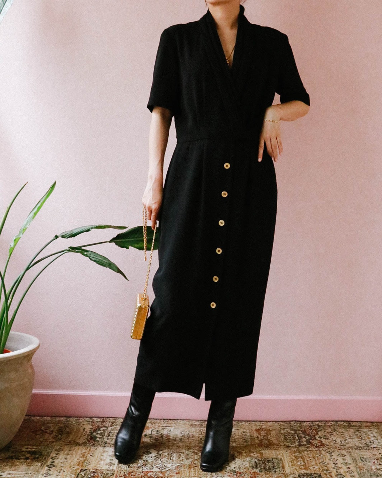 デイリーにもパーティーシーンにも使えるブラックワンピース。