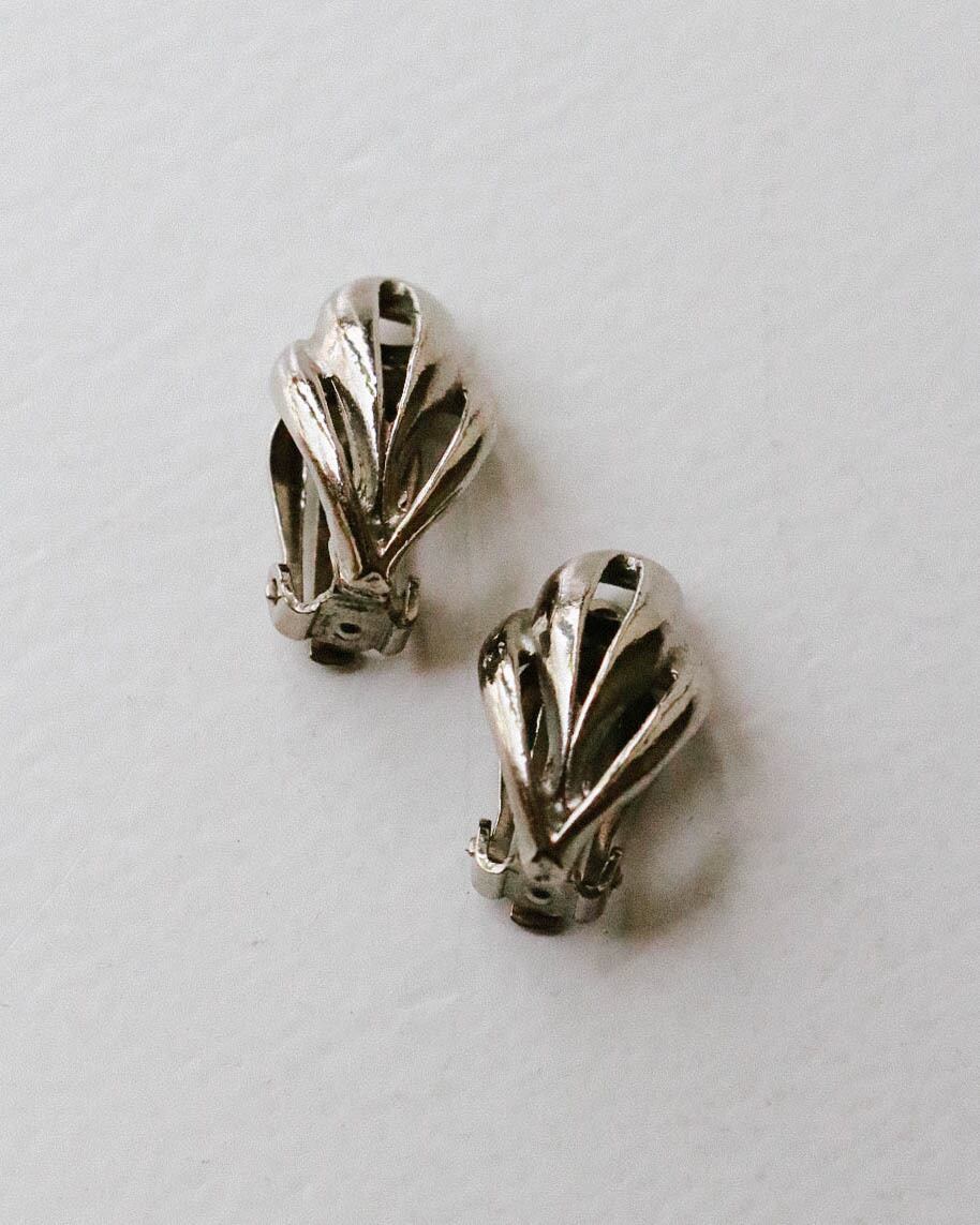 夏注目のシルバーアクセサリー。こちらのイヤリングはデッドストックのもの。葉っぱをモチーフにした可愛らしいデザインのシルバーカラーが重たくなりすぎず耳元にクールな色香が加わります。