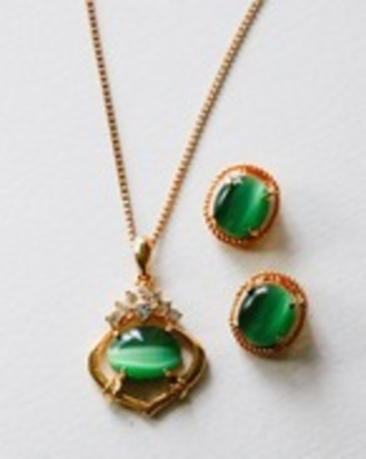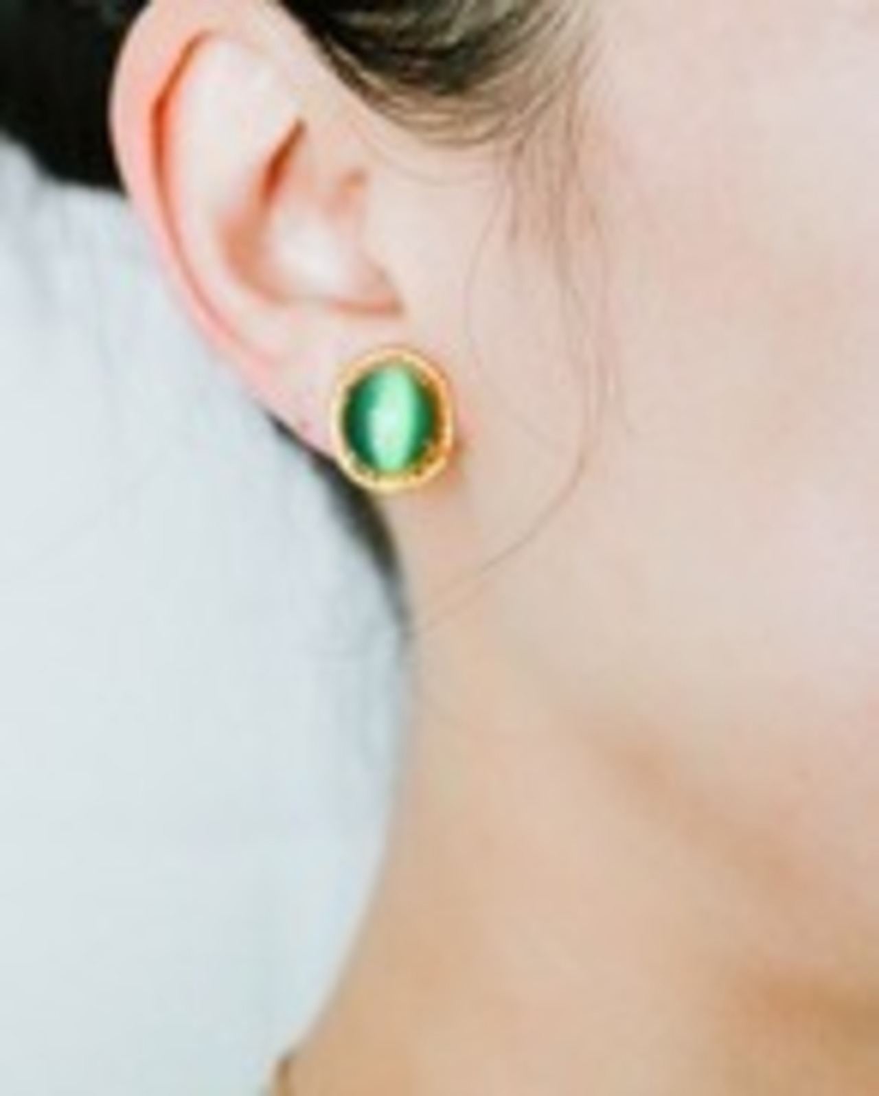 光を纏うエメラルドグリーンが美しいイヤリング 装飾が煌びやかでありながらコンパクトなサイズ感で普段のコーディネートに取り入れやすい。オケージョンシーンでも華やかに活躍!合わせを考えずとも、顔周りをまとめてくれるネックレスはあると重宝するアイテム。