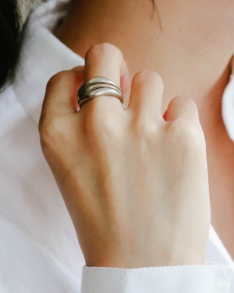 Wave silver ring