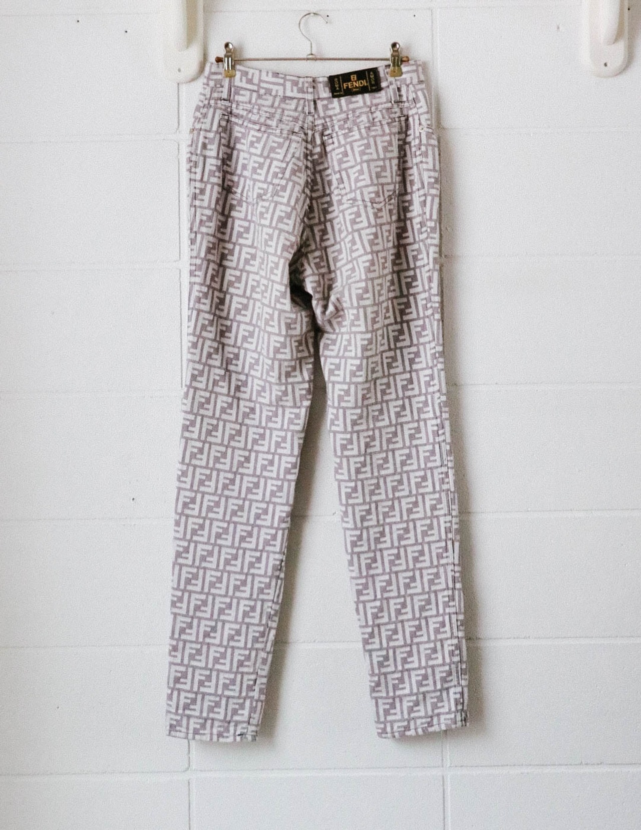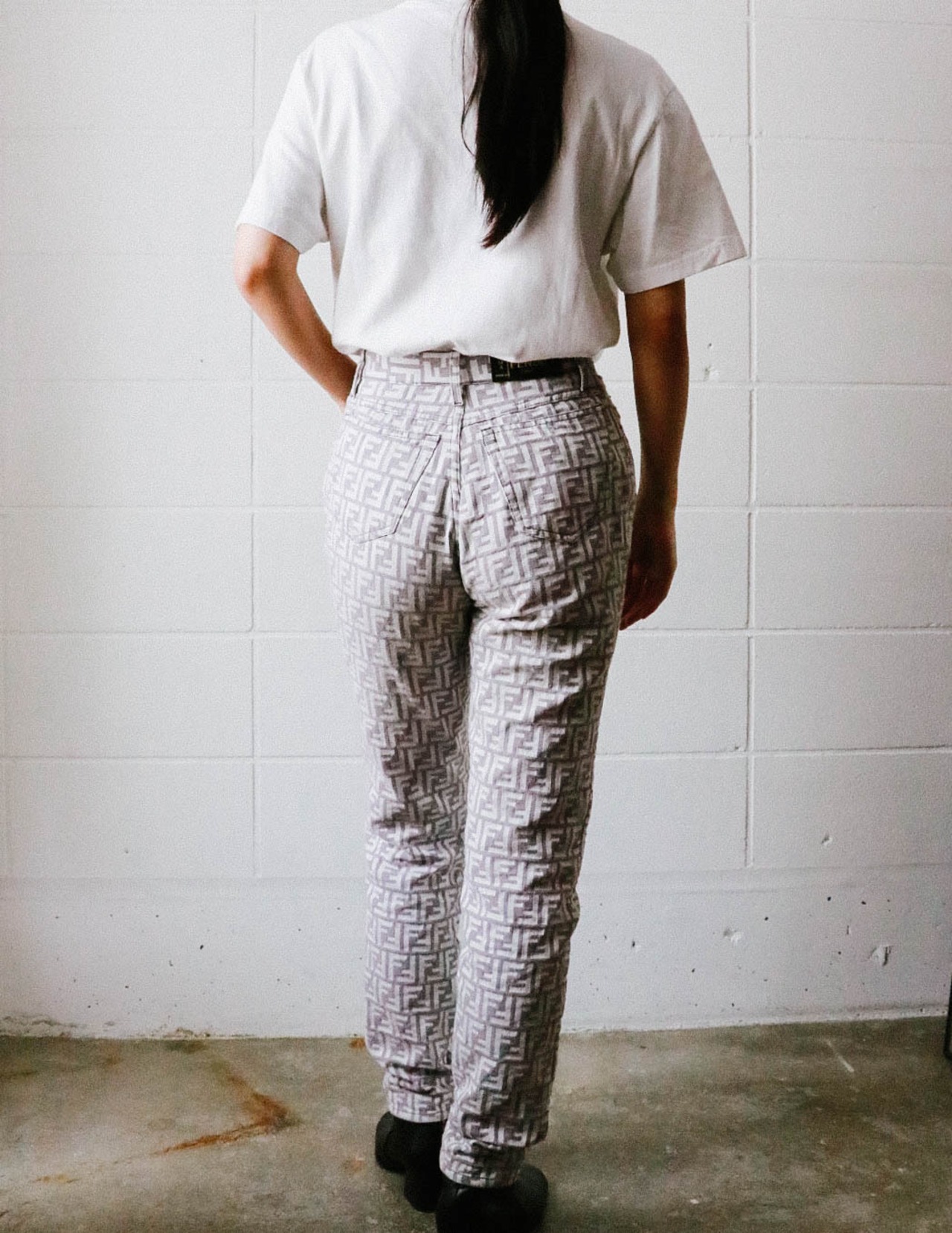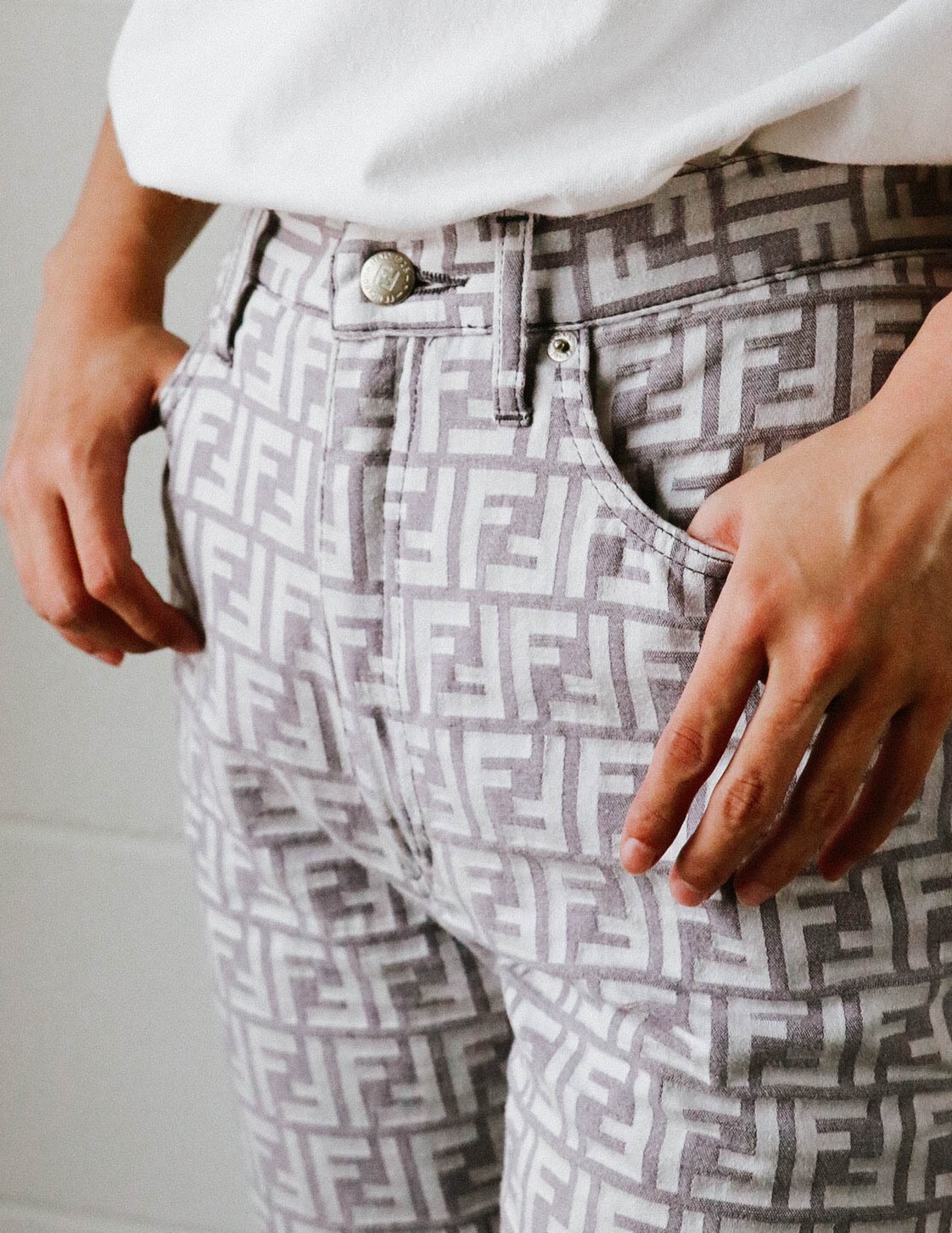 モノグラムが再燃している昨今、おすすめなFENDIのズッカ柄パンツが入荷しました。股上深めのストレートタイプでハリがあり、美しいレッグラインが仕上がる一品。Tシャツ、ブラウス等どんなトップスとも好相性で、合わせる靴次第で印象がガラッと変わります。トーンをおさえたグレーのニュアンスがとてもいい。