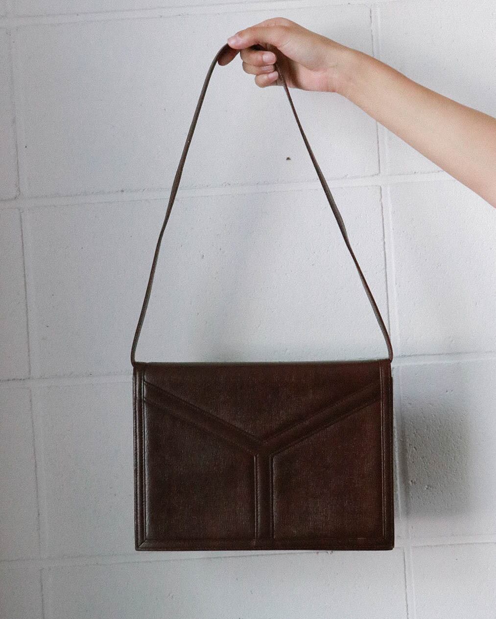 ほどよいミドルサイズに、ダークブラウンでコーディネートに馴染みやすい直線が美しいデザイン。トレンドを気にせず長く愛用できる、ずっと大切に使いたい一品です。
