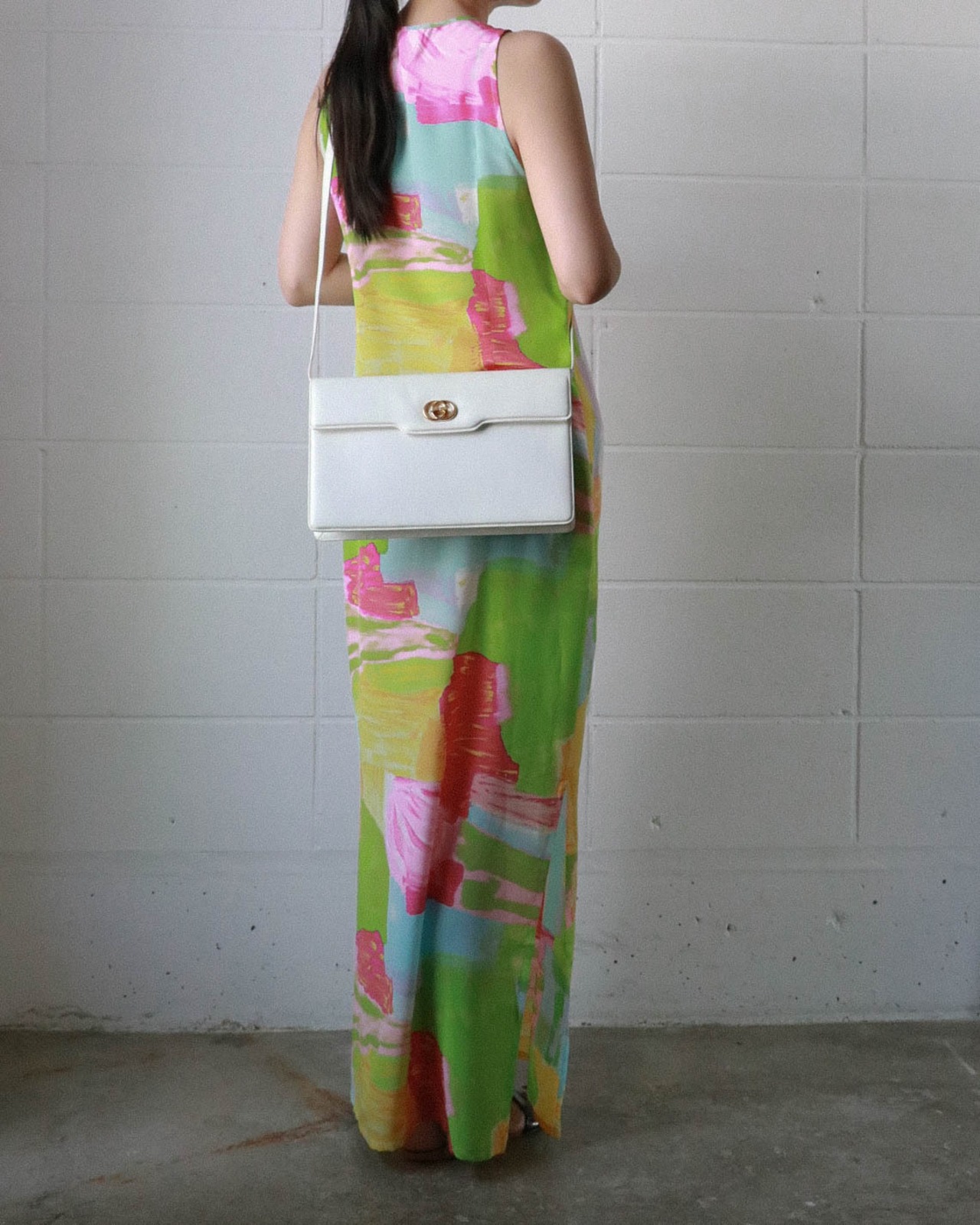 グッチの2wayバッグです。優等生色のようなホワイトとエンブレムのように輝くロゴ。
