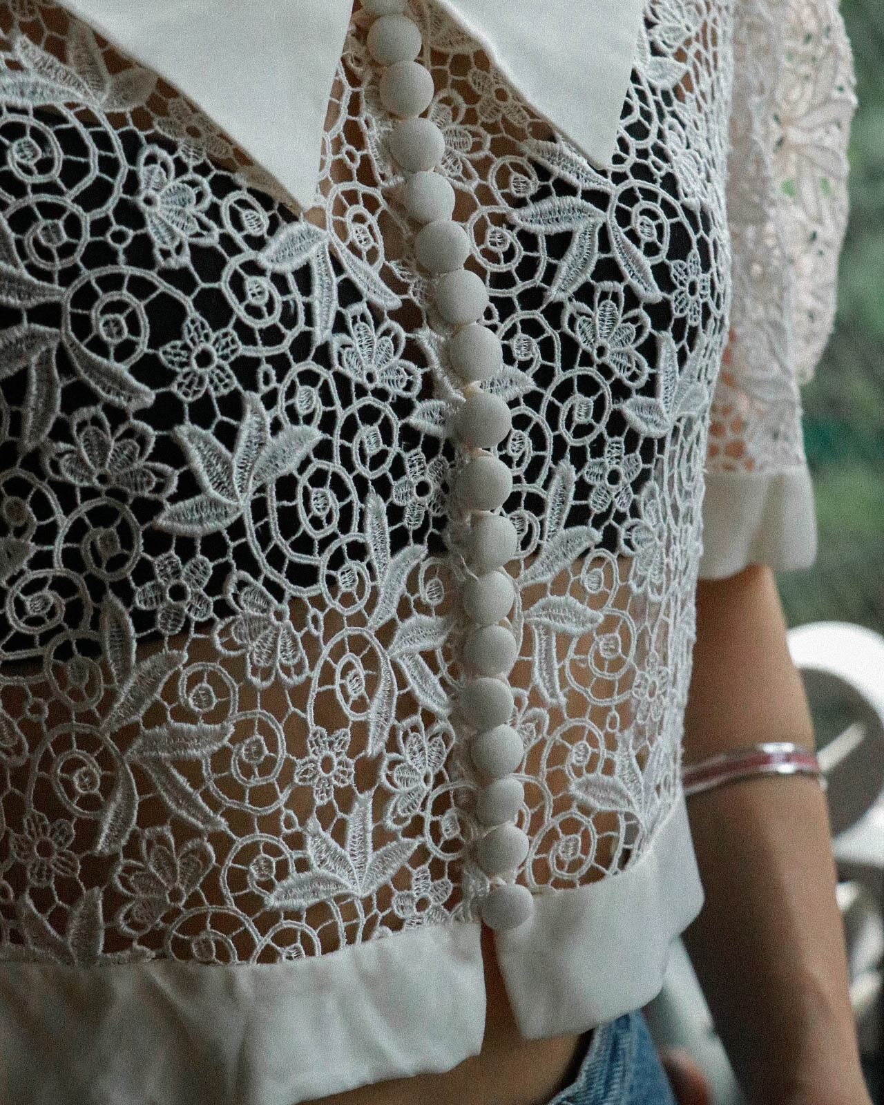 60s White lace blouse