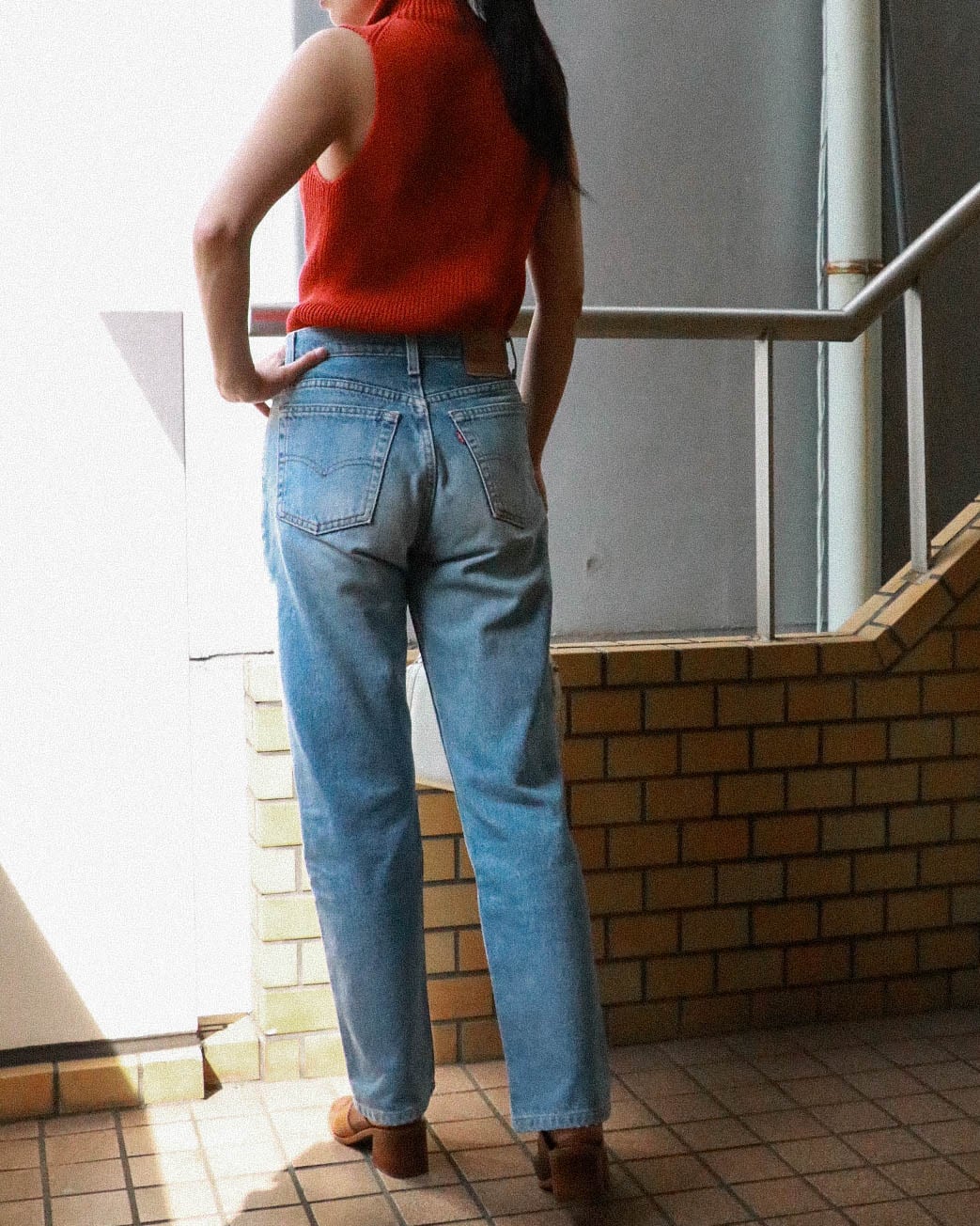 スタンダードなストレートシルエットに良い感じのブルーでトレンドに関係なく楽しめます。