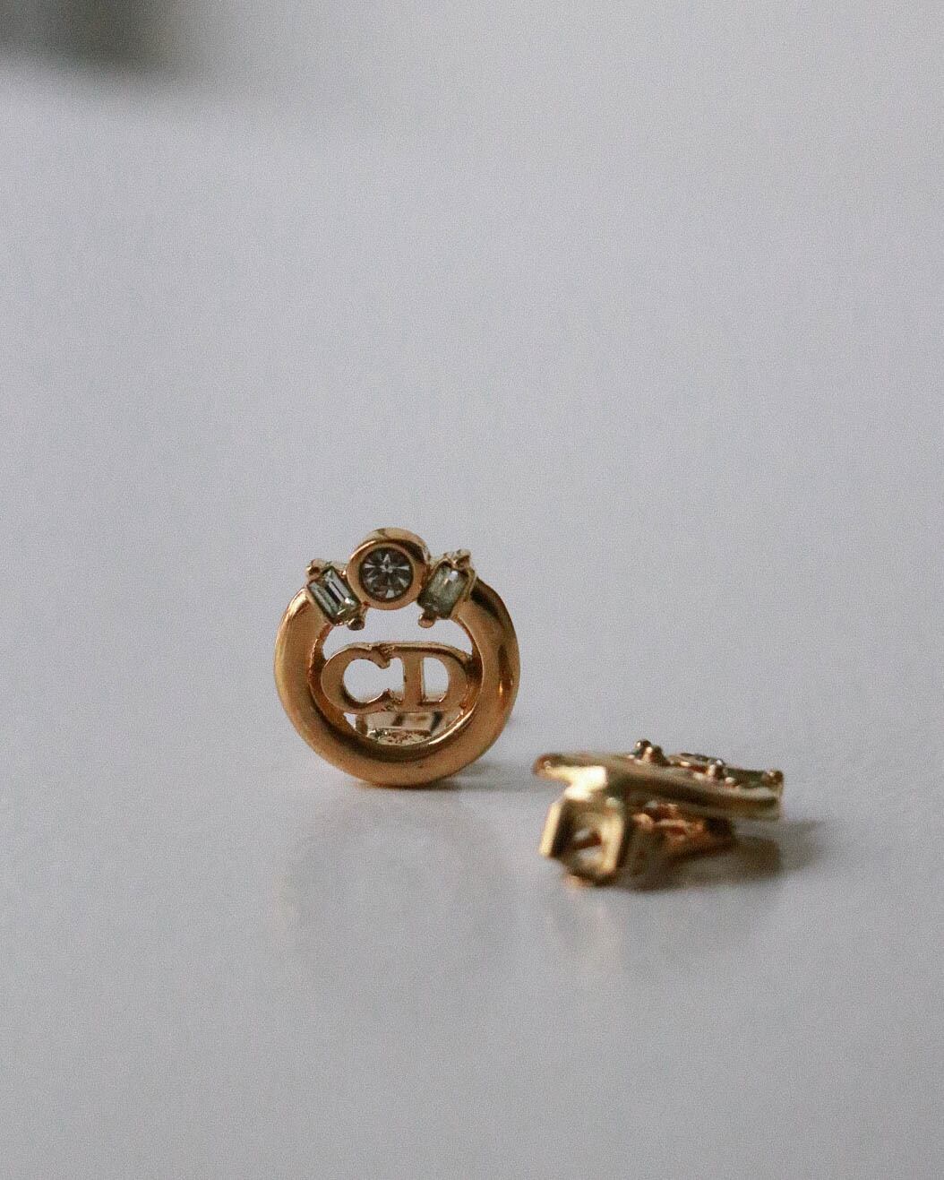 ゴールドトーンのディオールのミニイヤリング。ミニマムなデザインは耳馴染みもよくピアス感覚で楽しめます。どんなコーディネートにも馴染むのでオススメです。