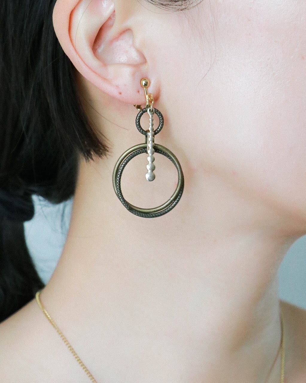 サークルモチーフがゆらゆらと揺れ動き、顔周りに華やぎを添えます。