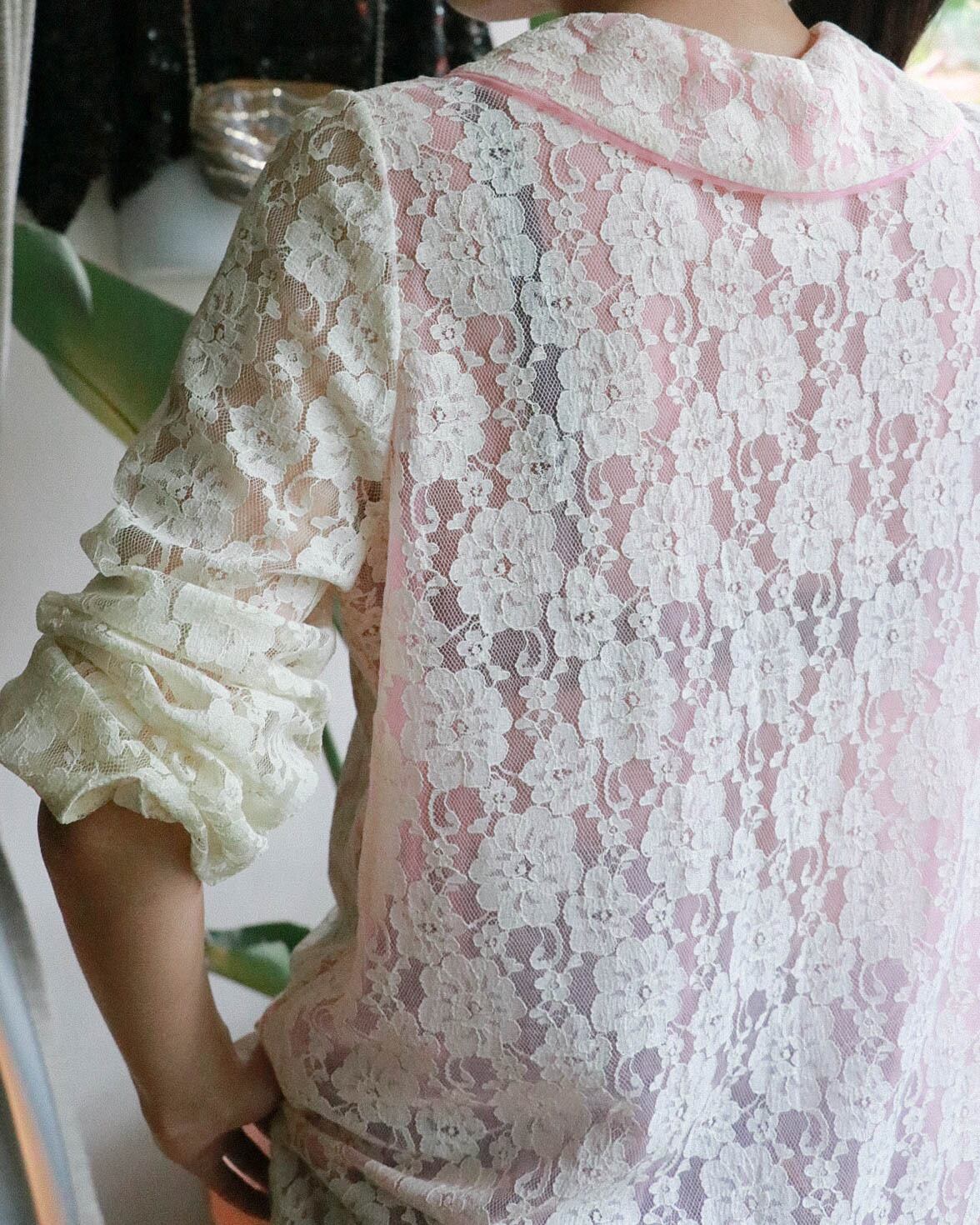 vtg pink lace blouse