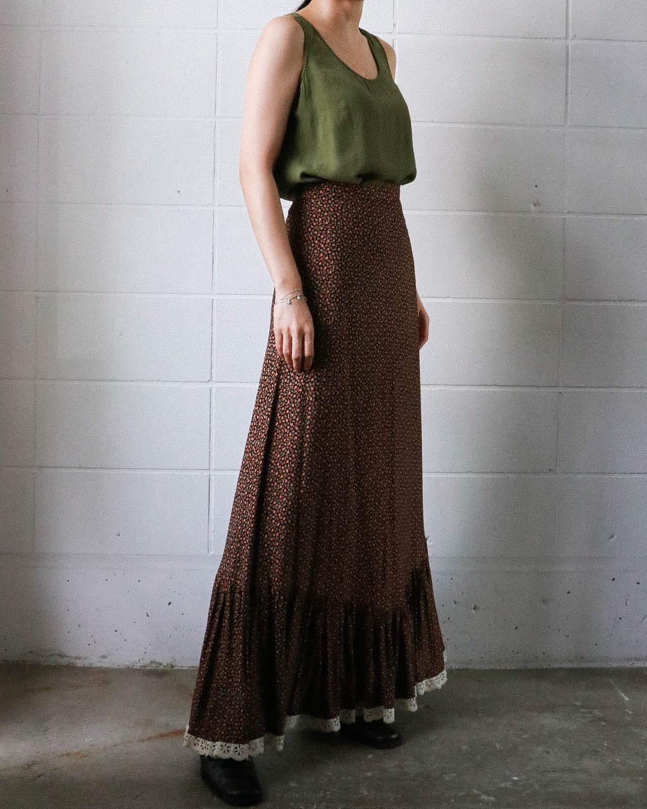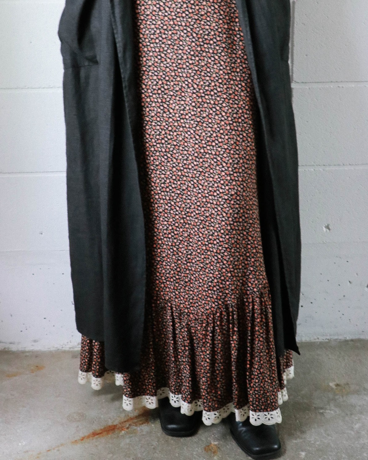 シルエットや丈感、色柄全てが乙女心を鷲掴みにする1970年代のロングスカート。