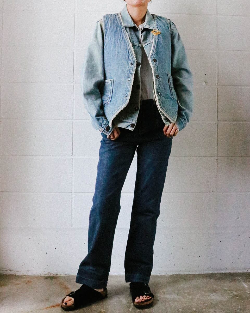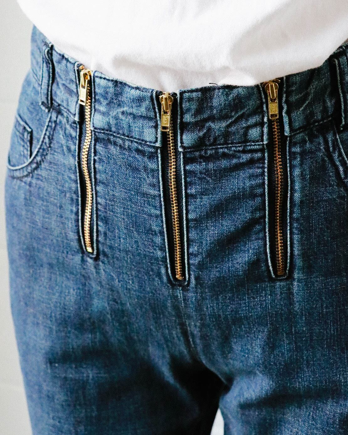 カジュアルなデニム素材ながら、どこか品をまとったようなこちらのパンツはCHANELのもの。