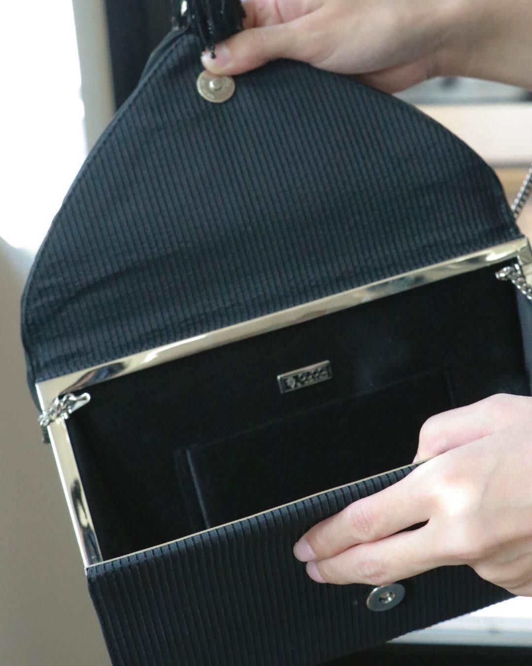 ブラックベースでどんなコーディネートにも馴染み、デイリーはもちろんパーティーシーンにもオススメです。
