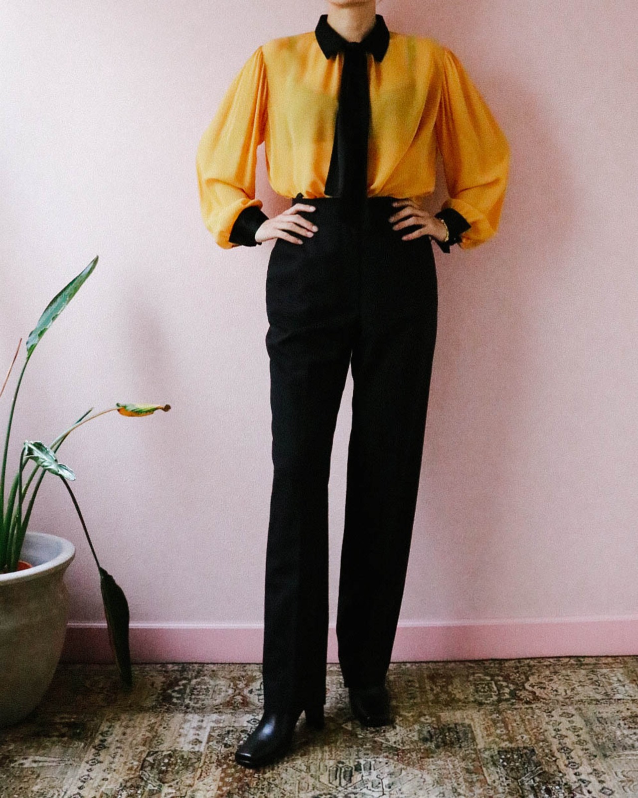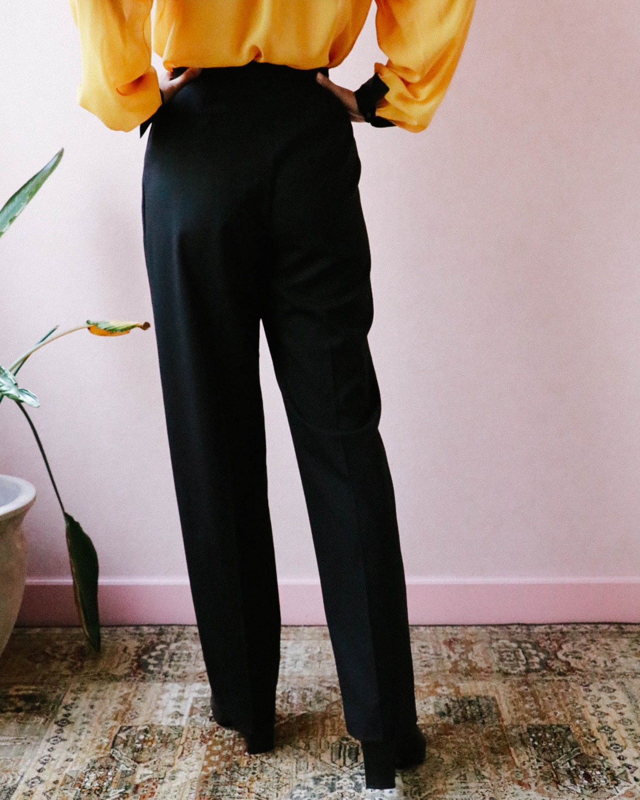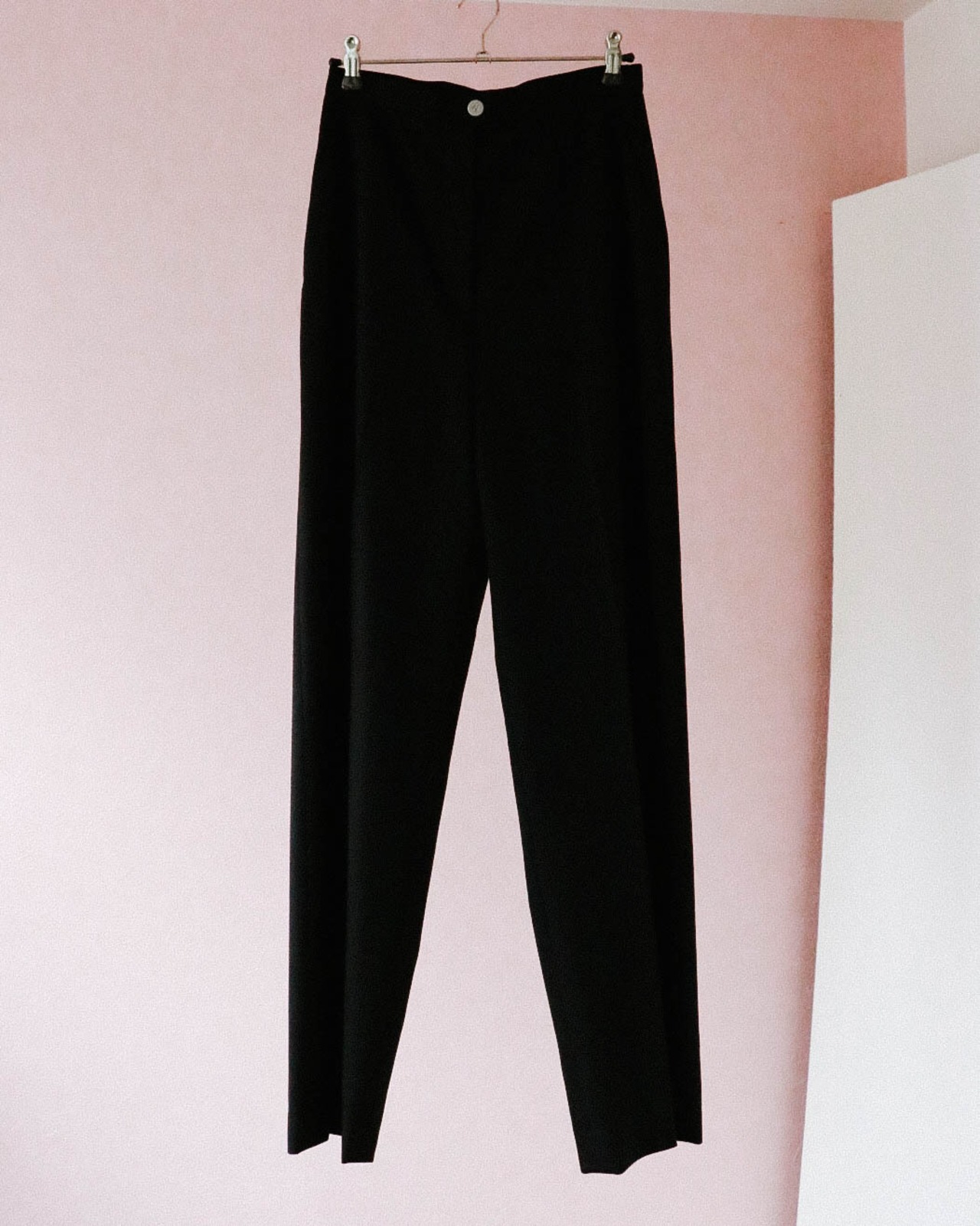 シャネルのライン美が際立つ極シンプルな薄手のウールパンツは2001年のもの。