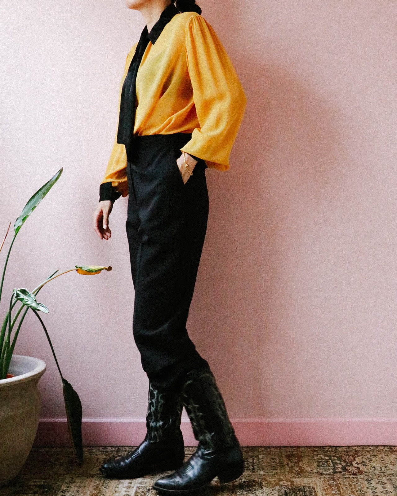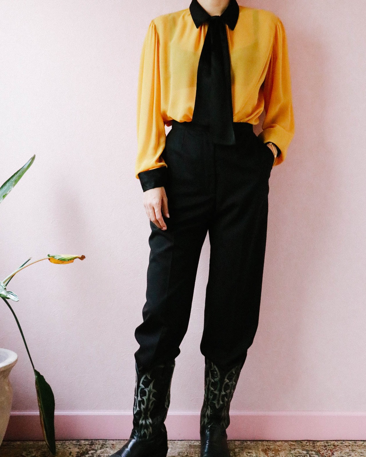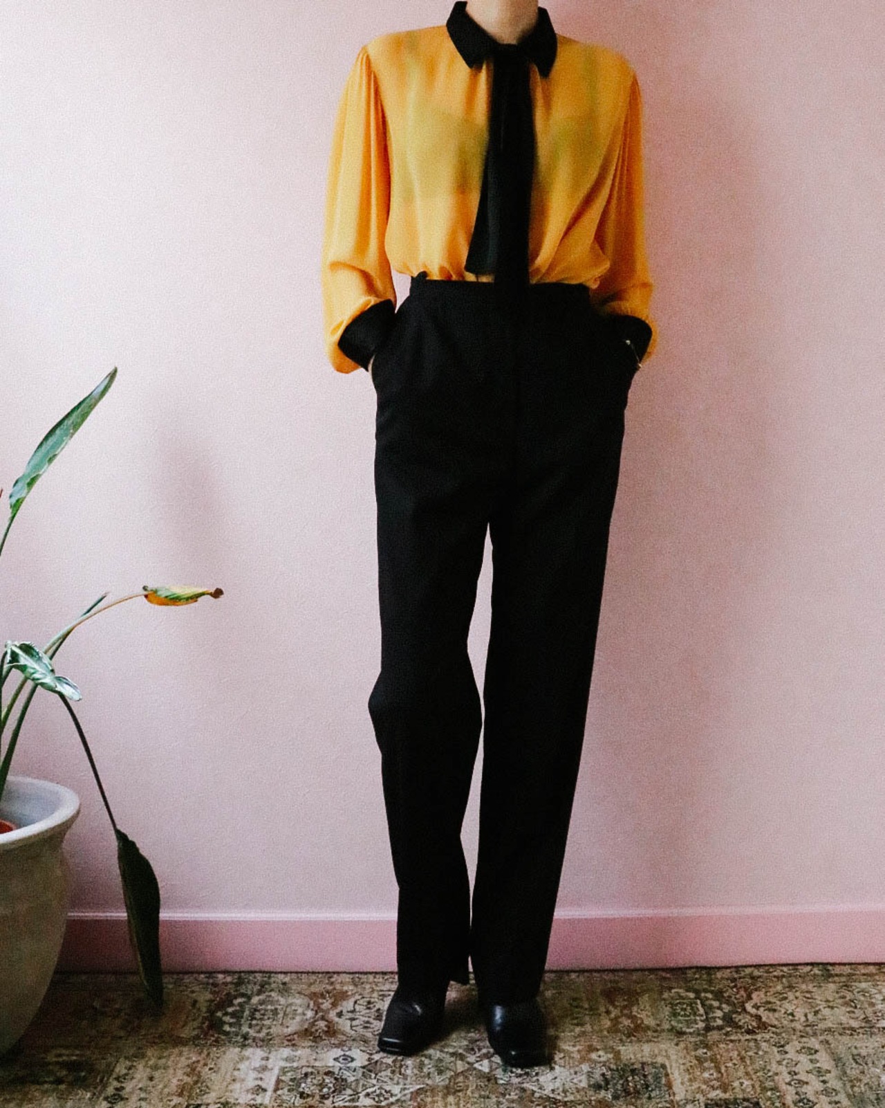 シャネルのライン美が際立つ極シンプルな薄手のウールパンツは2001年のもの。