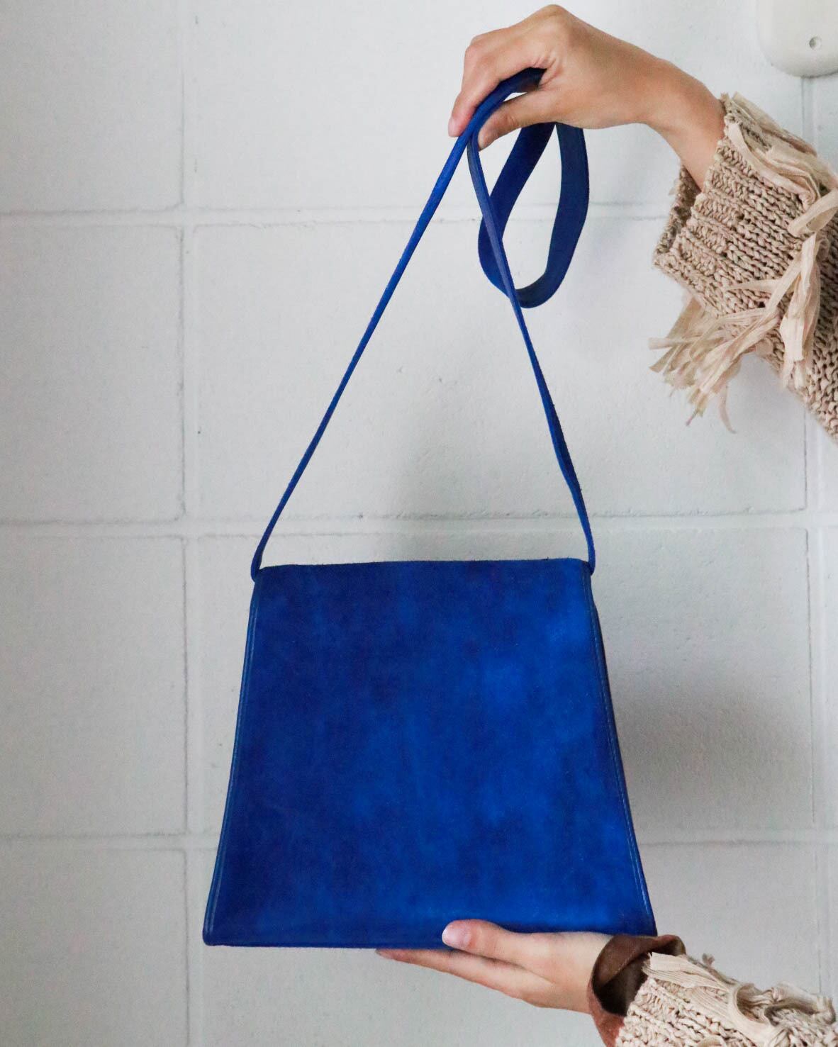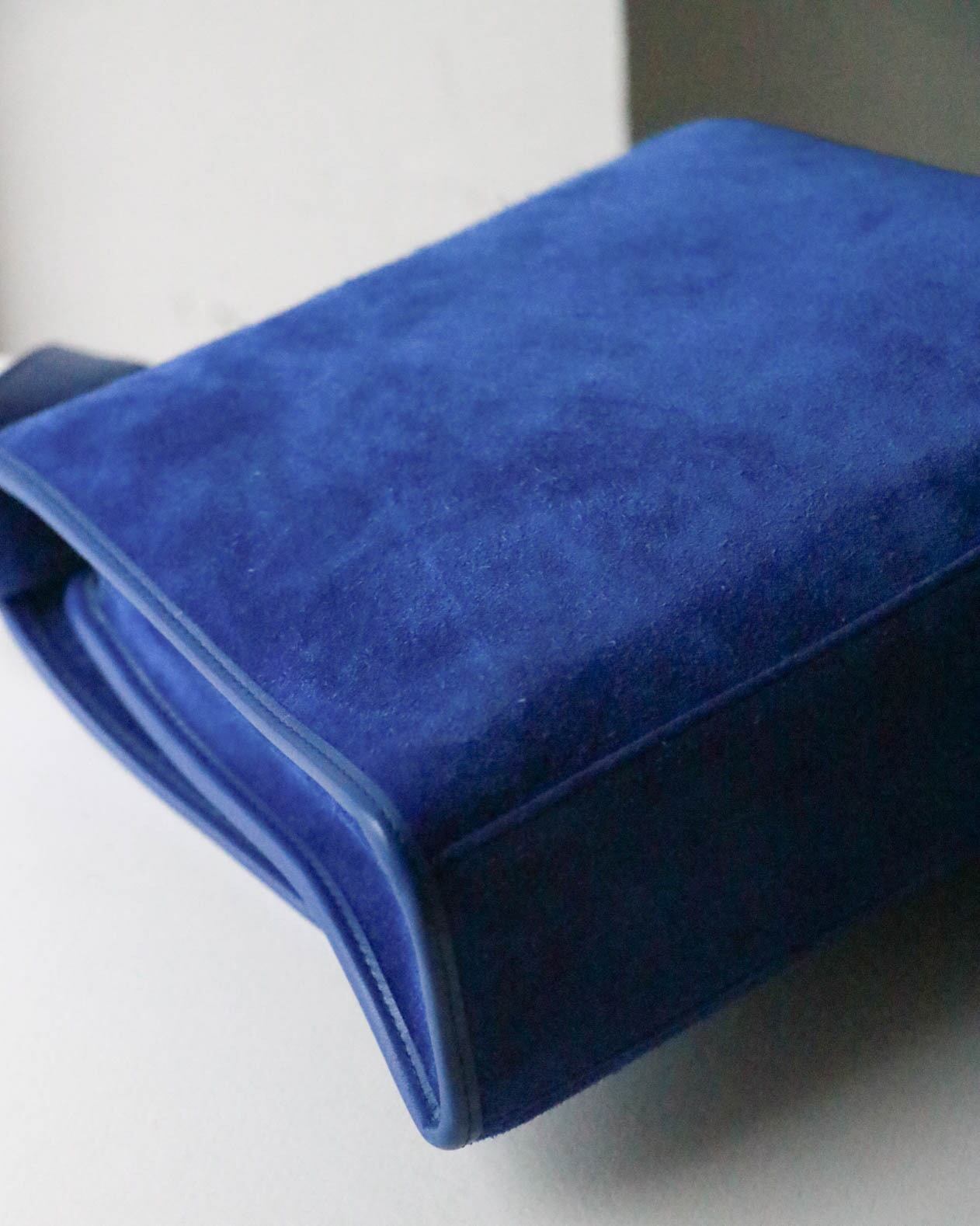 人気の高いYSLのバッグ。こちらはブルーのスエード生地がとても珍しいヴィンテージらしさが溢れるデザインです。身体にフィットするコンパクトなデザイン、マチもしっかりめにあるので貴重品が十分に入ります。トレンド関係なく活躍できるミニバッグ。ヴィンテージもので個性を出してみてはいかがでしょうか。
