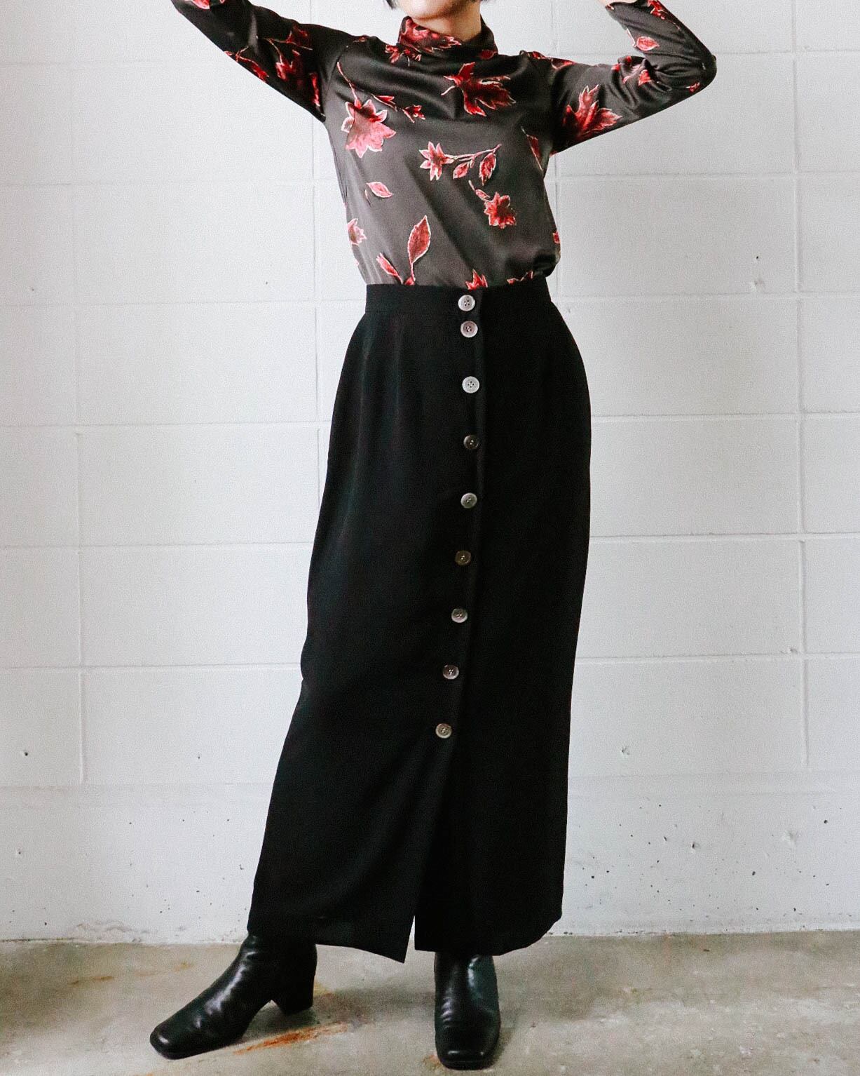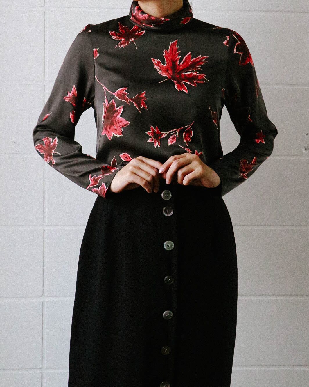 艶やかな生地に紅葉した葉柄が映える美しいトップスはウンガロ。