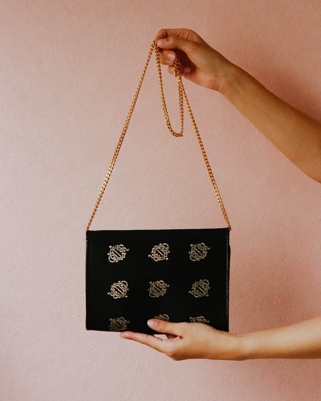 金ラメのロゴ総柄でゴージャスな雰囲気をもつデザイン。重くなりがちなチェーンバッグですが表素材がファブリックな分、軽量さもあり使い勝手良し。デイリーからパーティーシーンまで幅広く楽しみたい。