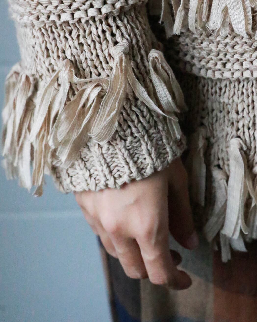 Beige fringe cardigan