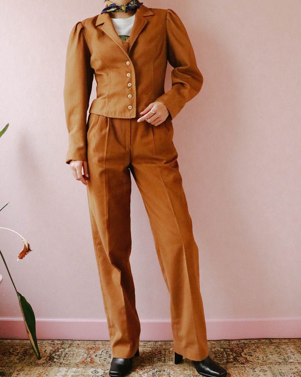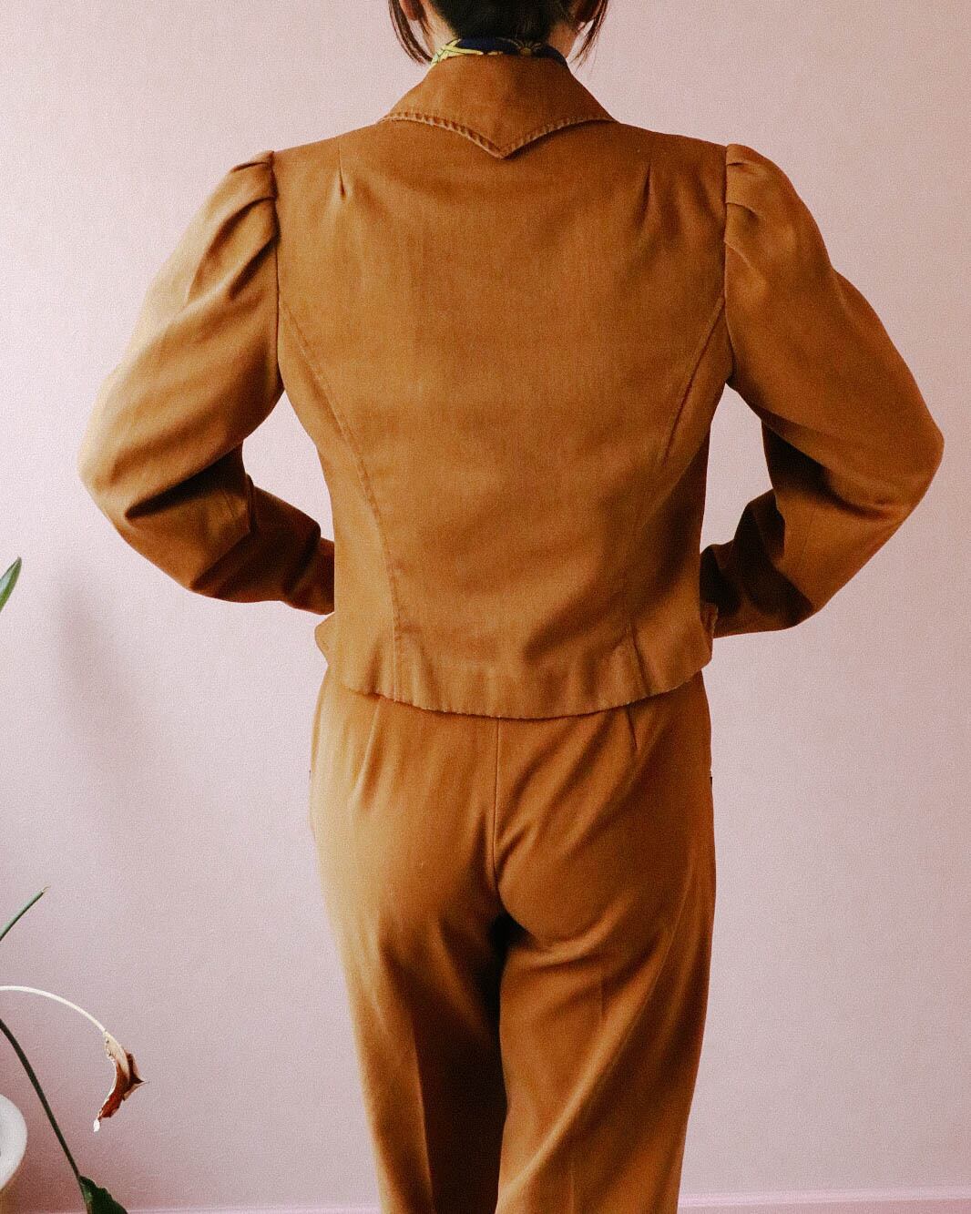 シンプルなシルエットであるからこそ、パフスリーブのディテールやミニマルなボタンがいかされたデザインとなっています。