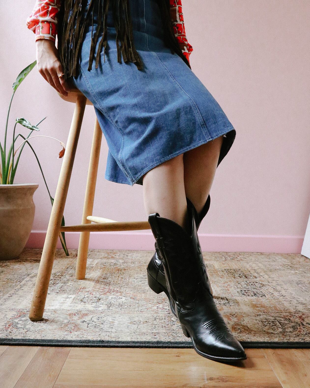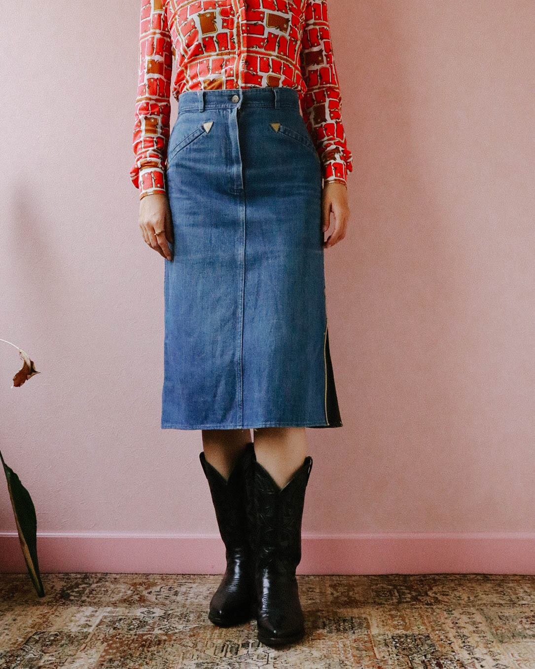フロント&バックポケット、左サイドのスリットに施されたレザーのアクセントが最高に可愛い。