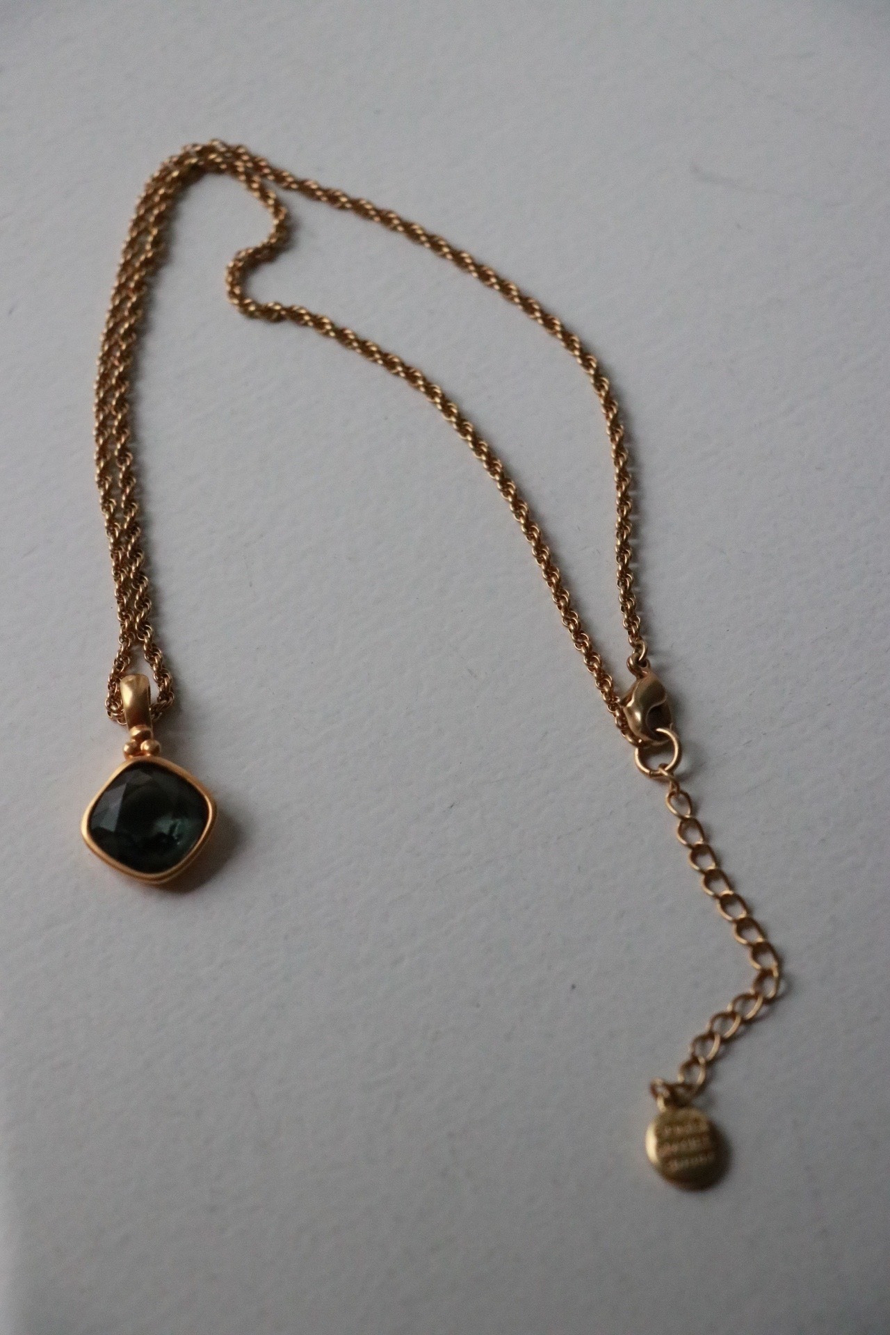 ソニアリキエル のブラックストーンネックレス。上品なゴールドチェーンにユニークなブラックカラーのクリスタルストーンが首元を華やかにしてくれます。モチーフの裏側やチェーンにもブランドロゴの刻印が入ってます。
