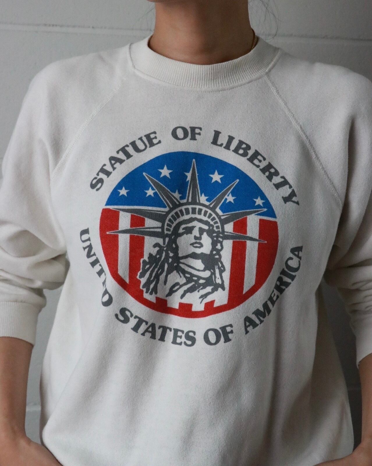 Statue of Liberty motif white sweatshirts