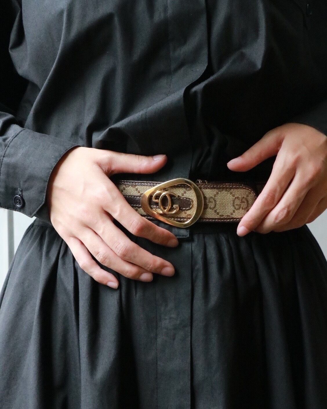 グッチのウエストベルトが入荷。モノグラムの総柄が施されていて、華奢なデザインの為さりげないアクセントのポイントになります。スタイリングにエッセンスをプラスしてくれるベルトは、豊富に持っていたいです。