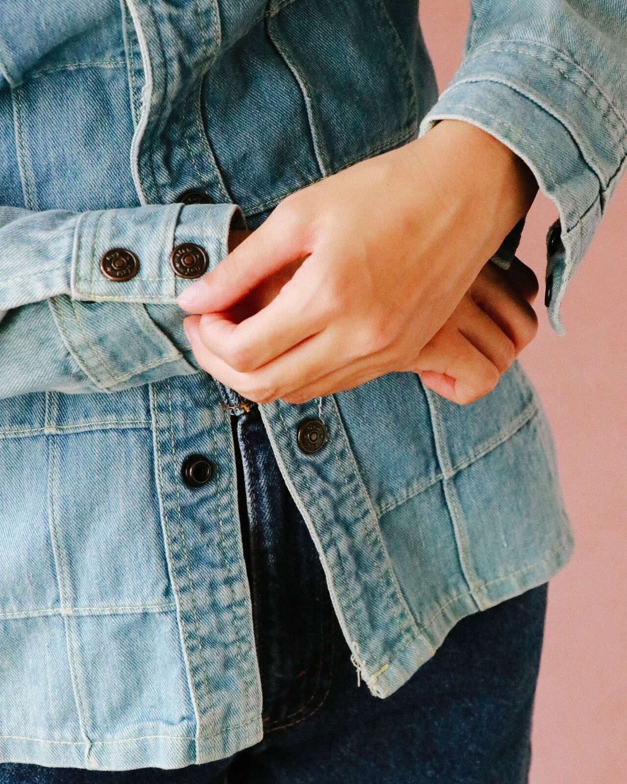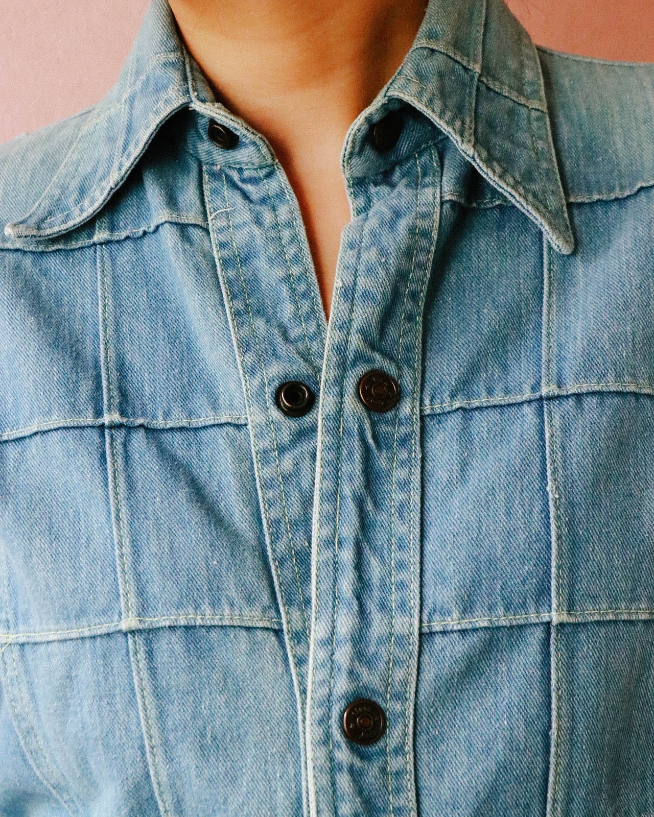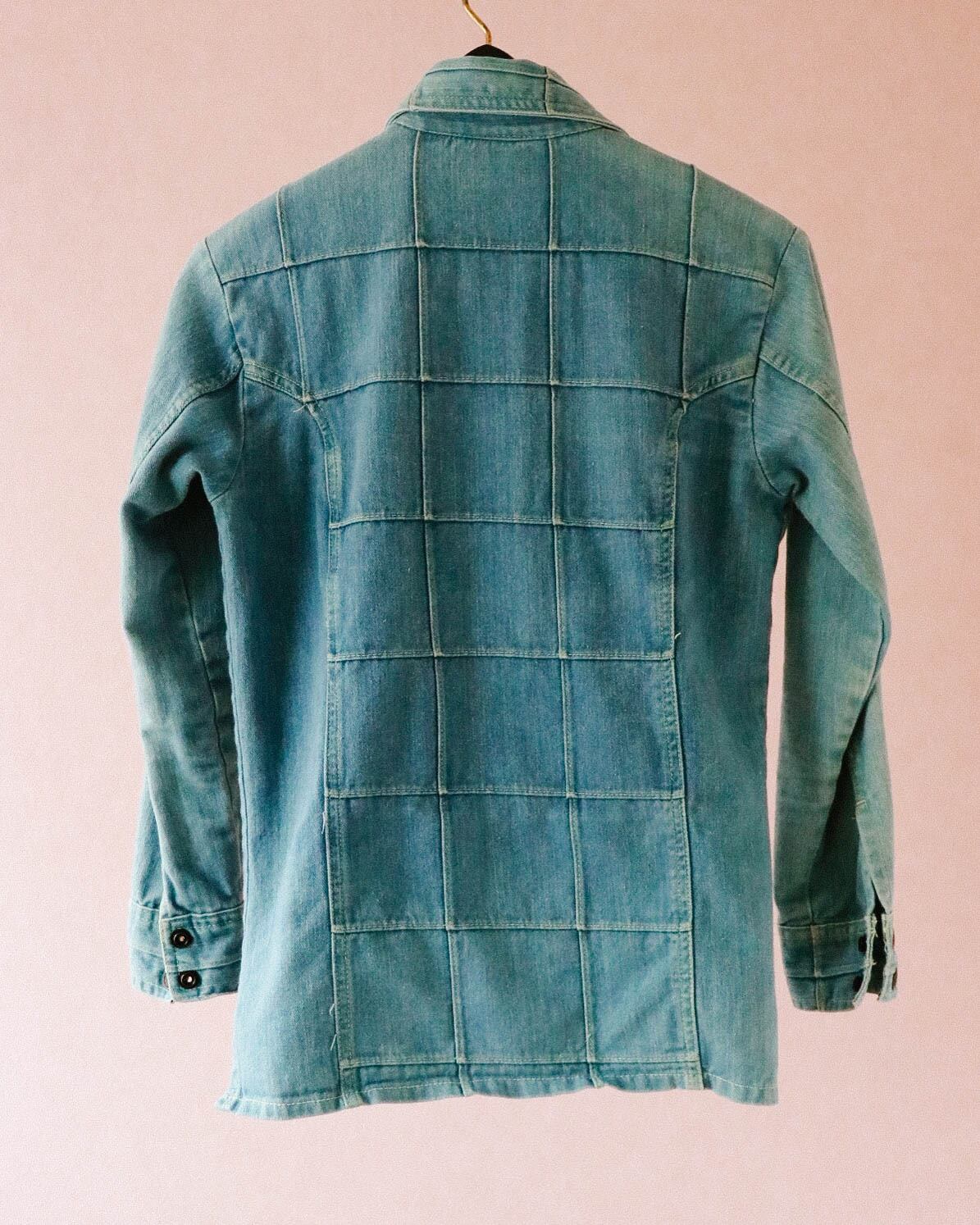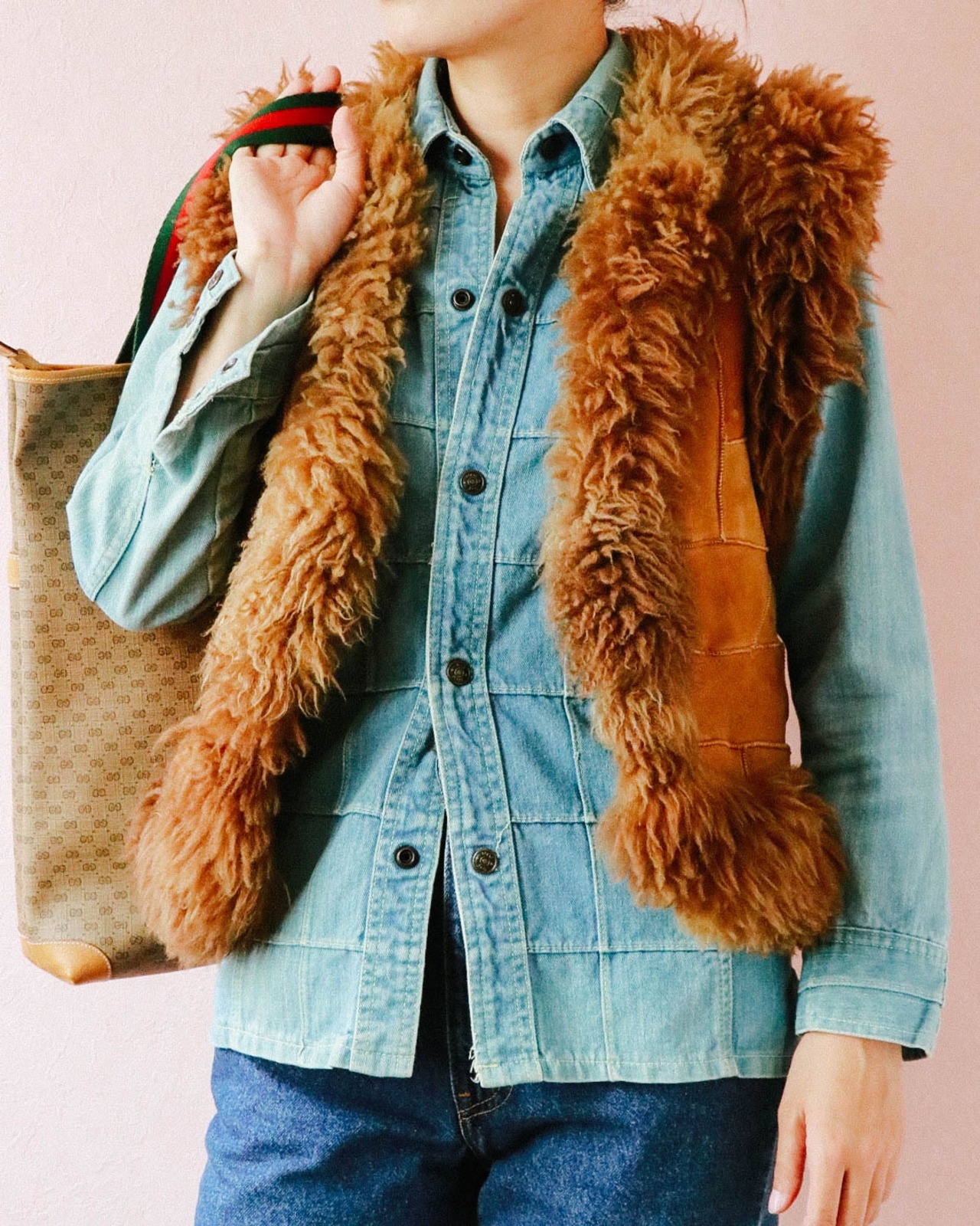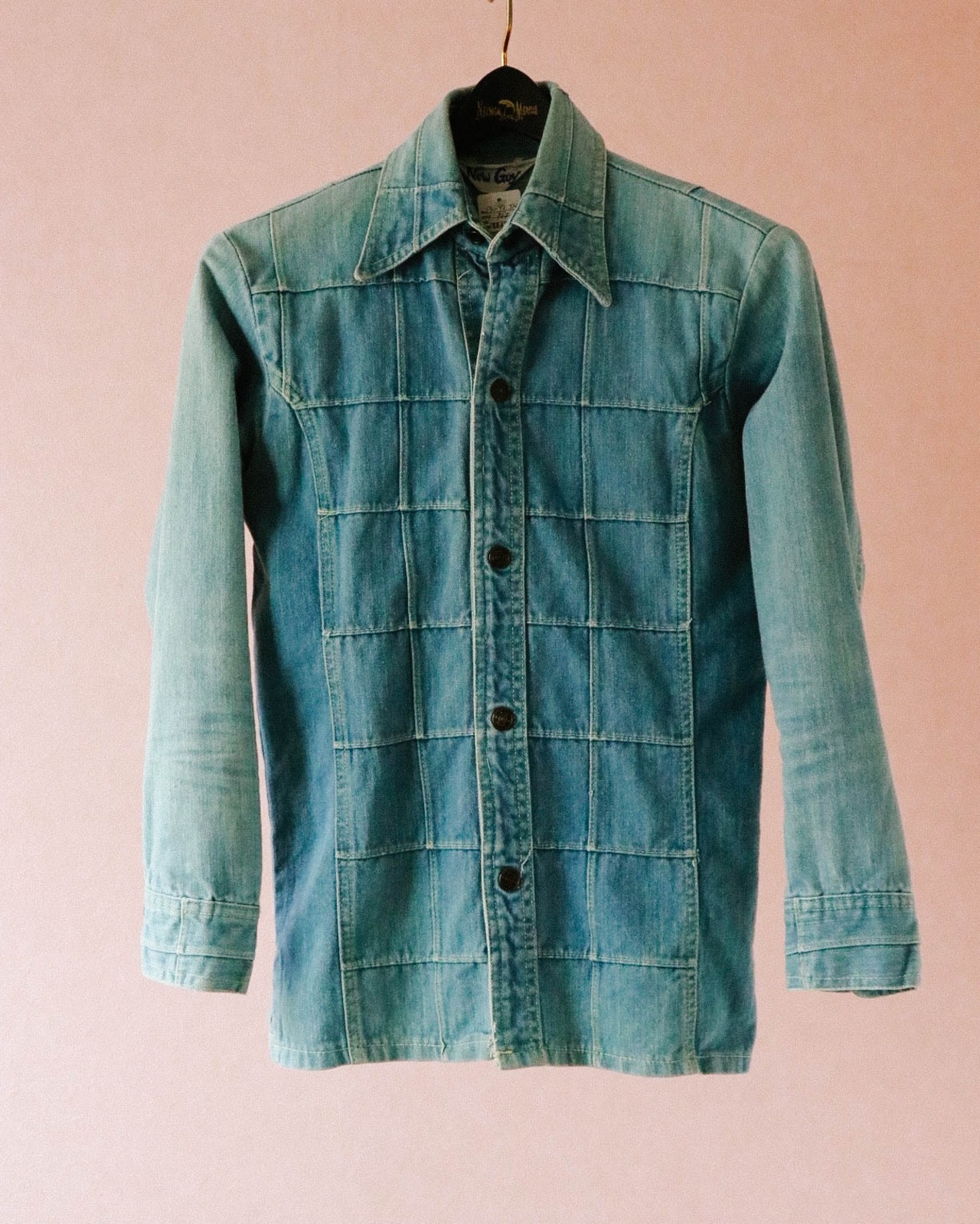 パッチワークのようなステッチと大きな襟が70sらしさ全開!