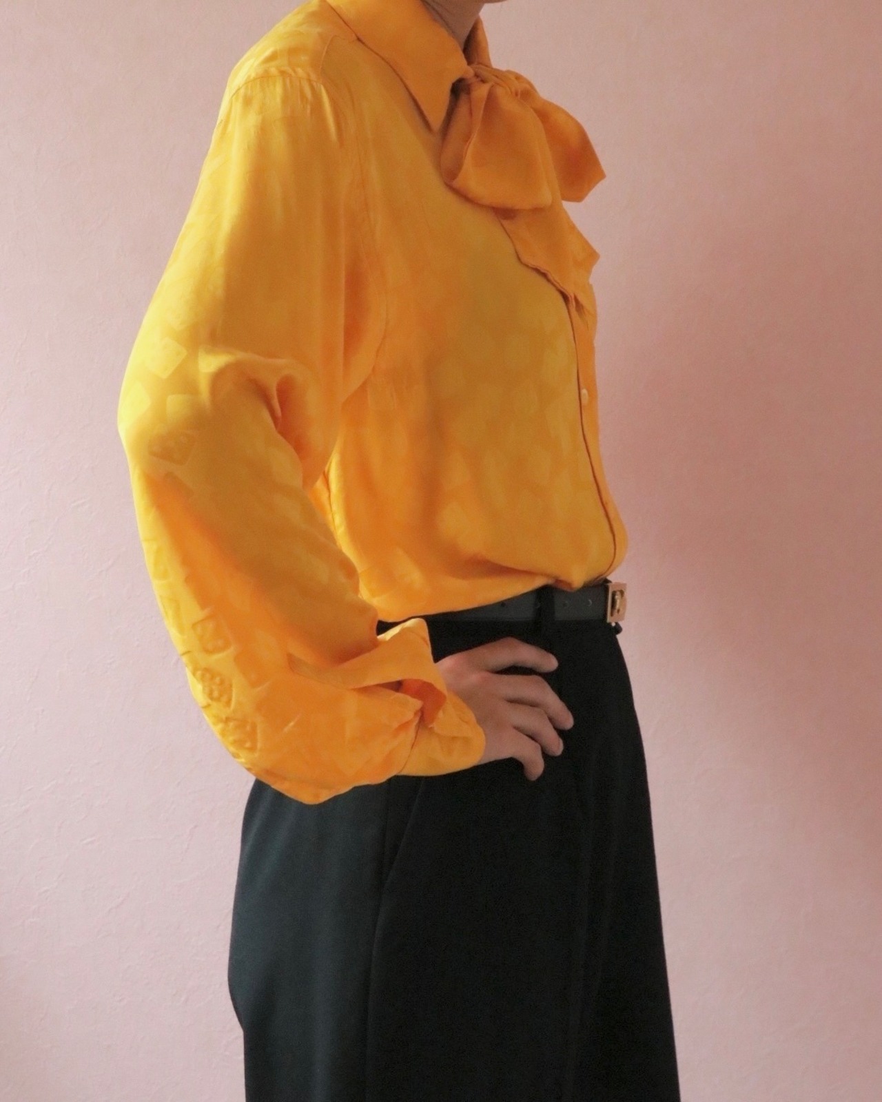 AWシーズン、ワードローブに揃えておきたいボウタイブラウス。こちらは、80’sのCELINEのもの。