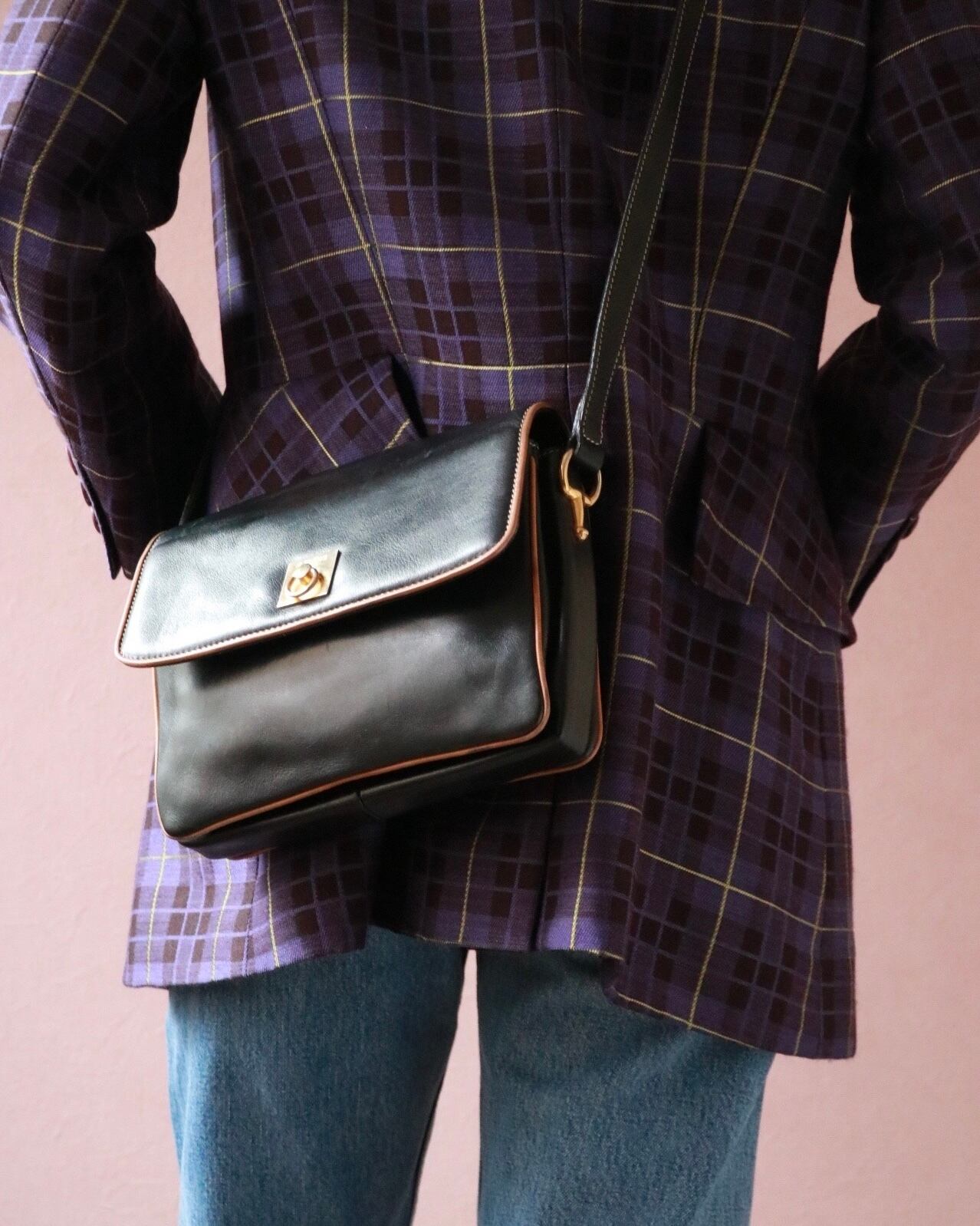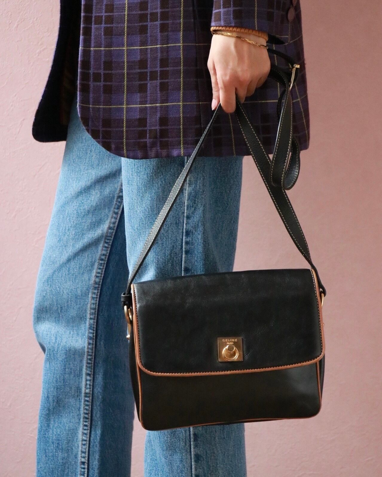 ライトブラウンとブラックのバイカラーに柔らかなレザーを使用したセリーヌのバッグ。