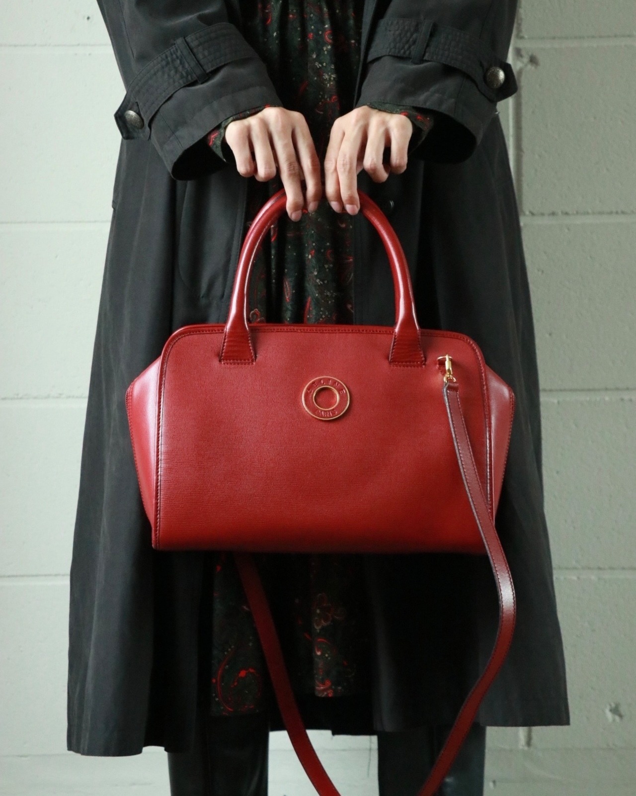 ボストンライクのボディに、フロントのロゴ金具が上品。ベーシックカラーを選びがちなバッグも、色モノを選んでコーディネートにアクセントを添えてみてはいかがでしょうか。