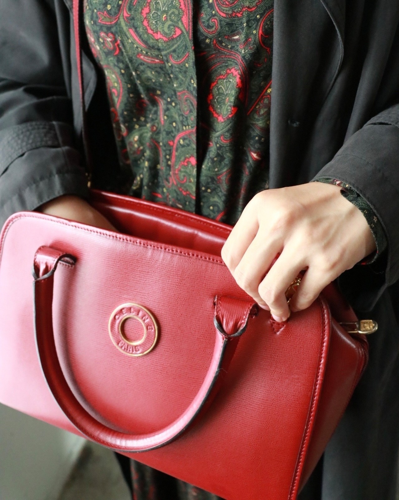 シックなダークレッドが目を惹く80's CELINE、2wayバッグ。