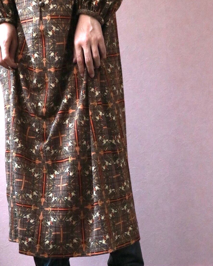 エルメス特有の上品な色合いに馬モチーフのプリントがどんなシーンでも合わせやすいスペシャルな一着。これからのシーズン活躍できるストレッチの効いたウールミックスの素材でメゾンブランドならではのディテールです。ロングブーツと合わせたり、アウターにカーディガンやお好みのコートで自分だけのコーディネートをお楽しみください。