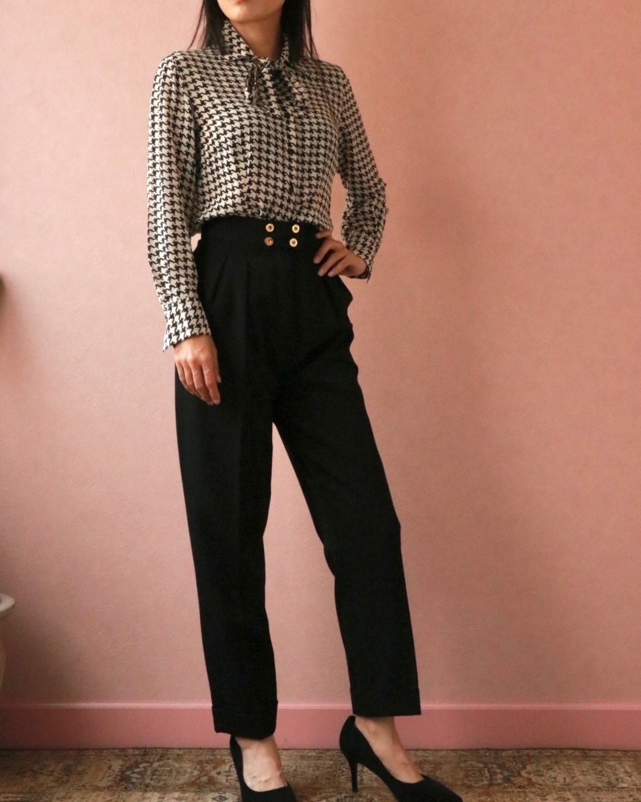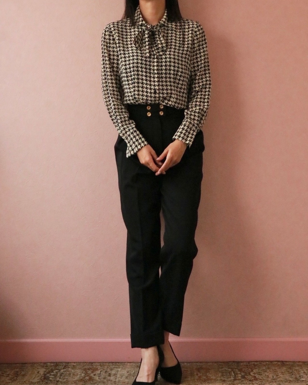 ベルト要らずなウエストのディテールとラインの美しさに惚れ惚れするシャネルのウールパンツ。シルクのライナーで着心地も抜群。