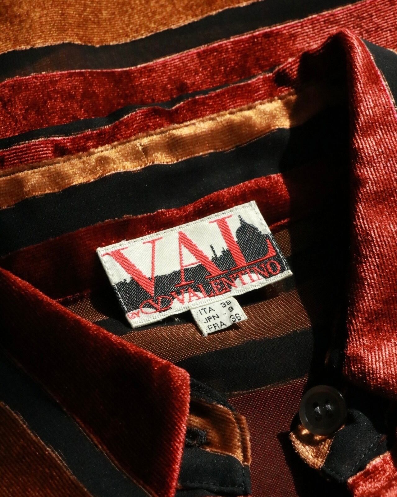 ベロアとシースルーの異素材mixのシャツで、三色の色づかいがアイコンとなり、一枚でも目を引くアイテムとなります。