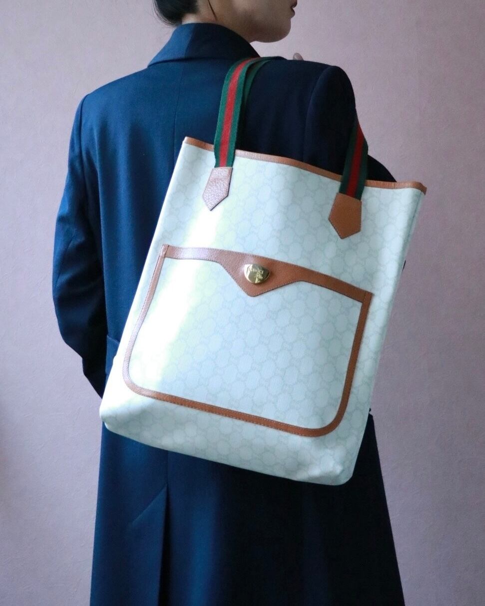 パソコン等も入るので仕事にもプライベートにも使いやすいグッチのトートバッグ。