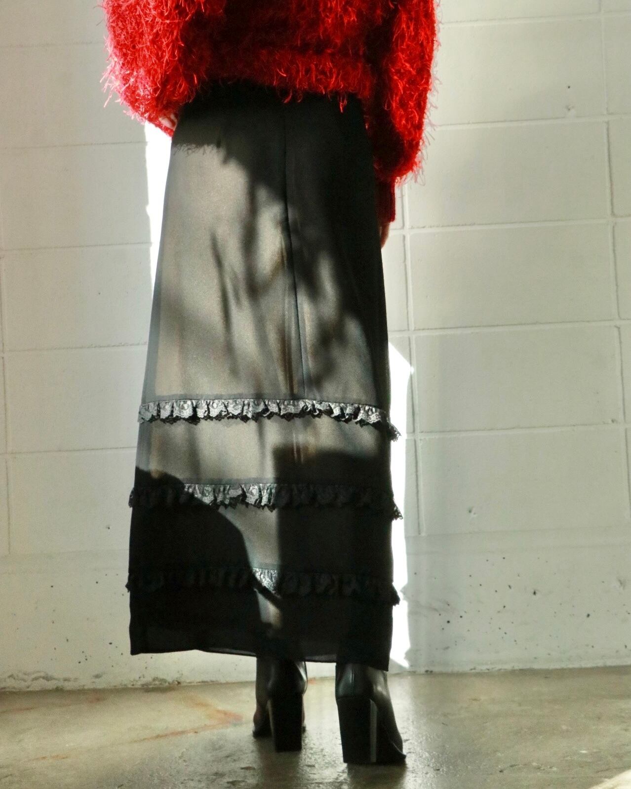 マキシ丈の黒スカート。