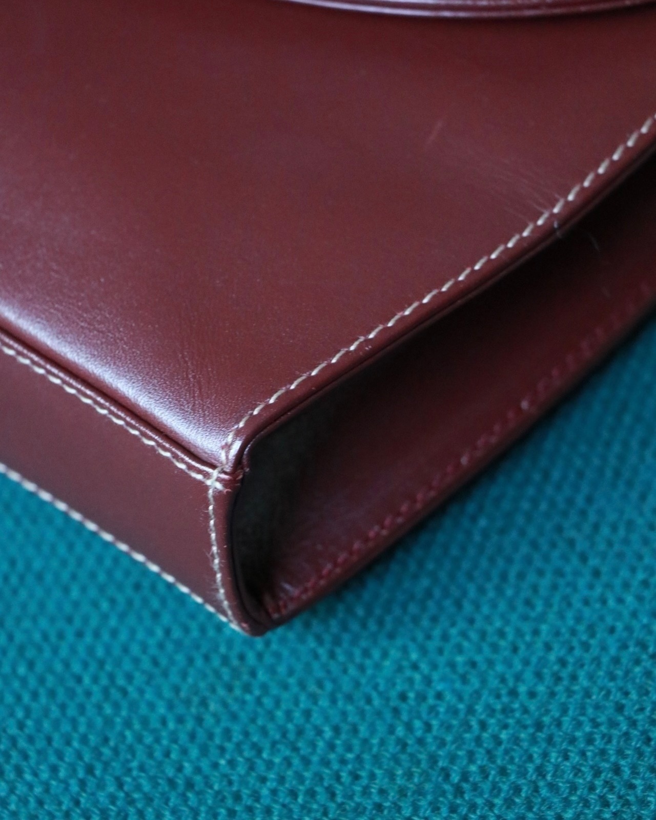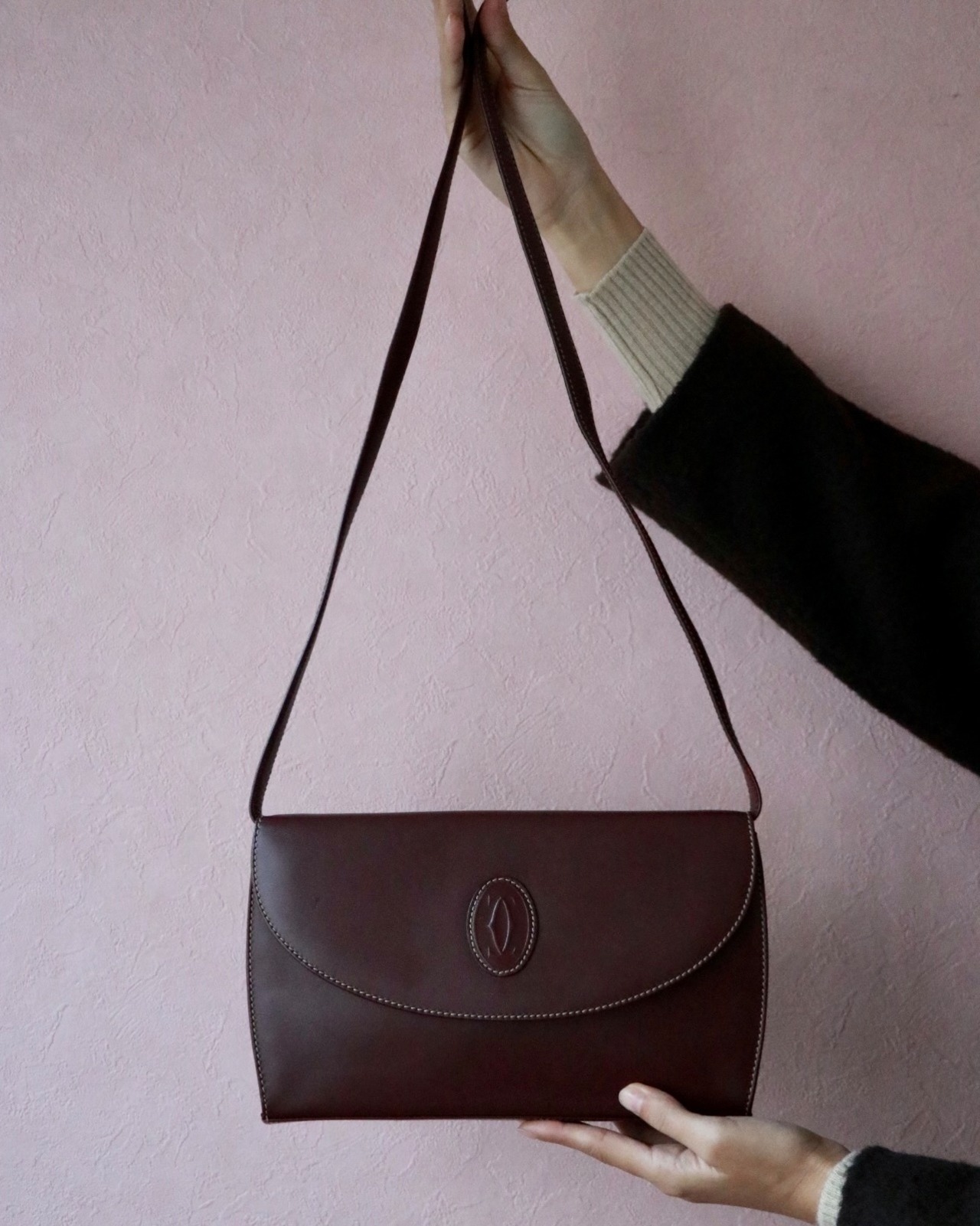 王道の洗練されたカルティエのボルドーカラーが魅惑的なショルダーバッグ。
